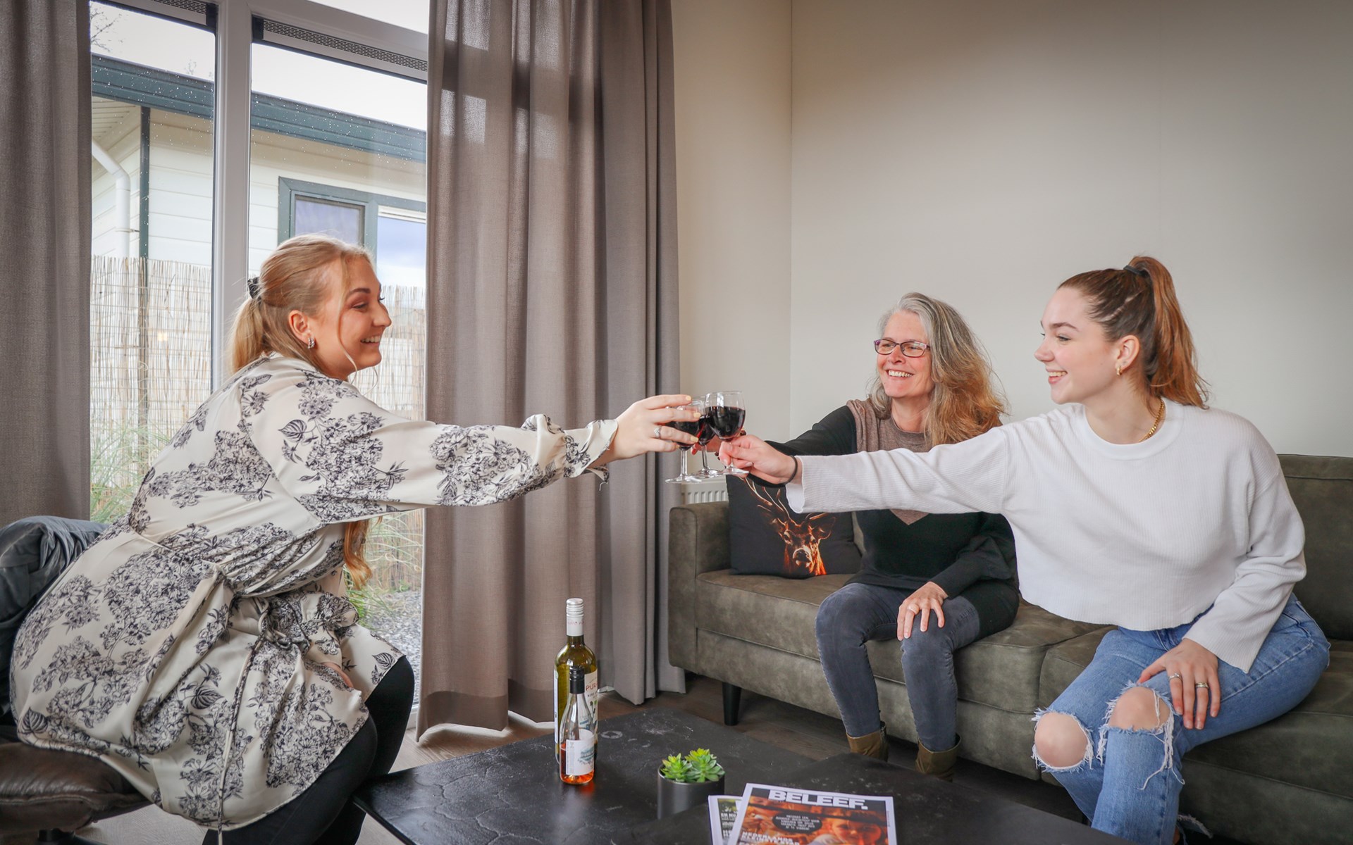 de app voorafgaand aan het verblijf, ideaal. We konden van alles bijboeken, reserveringen maken, broodjes bestellen. Checken wat er in de omgeving te doen is. Op de aankomstdag; fijn dat we niet naar de receptie hoefden. Alles was top geregeld. Het huisje was geweldig met sauna en jacuzzi. en de jacuzzi was heerlijk warm bij aankomst, een pre!!!! De bedden waren fantastisch. Ik heb in jaren niet zo lekker geslapen op vakantie als bij jullie. Het huisje was ruim. Genoeg te doen op het park, van bowlen tot aan midget golf. Geweldig!! en Kiki en Koen waren geweldig. De kinderen bleven ze maar knuffelen. Het was een groot plus punt dat we de receptie konden appen en er kwam een snelle reactie terug. Een dik compliment voor de receptie dat er ook zo snel actie werd ondernomen.
