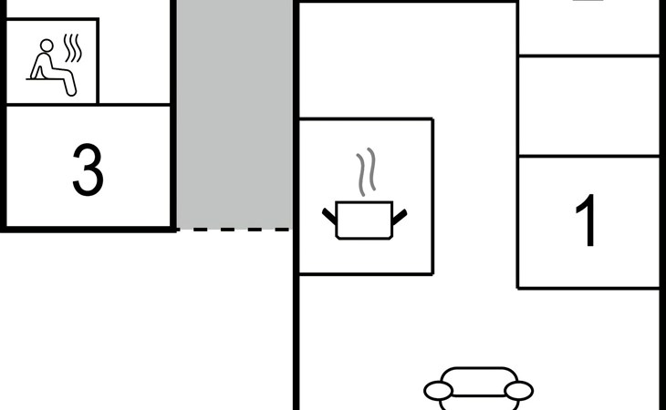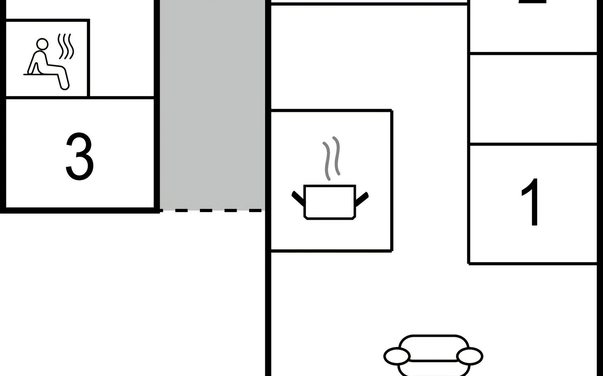Ihr Ferienhaus in Kongsmark bietet eine einfache, aber gemütliche Ausstattung und eignet sich hervorragend für einen erholsamen Urlaub in der Natur. Das Wohnzimmer ist mit Holzwänden gestaltet und bietet eine angenehme Atmosphäre. Hier können Sie sich auf den bequemen Sofas und Sesseln entspannen oder die Aussicht durch die großen Fenster genießen. Der Essbereich ist direkt integriert und mit einem Kaminofen ausgestattet. Im Anbau befindet sich unter anderem eine Sauna, ideal für erholsame Stunden.