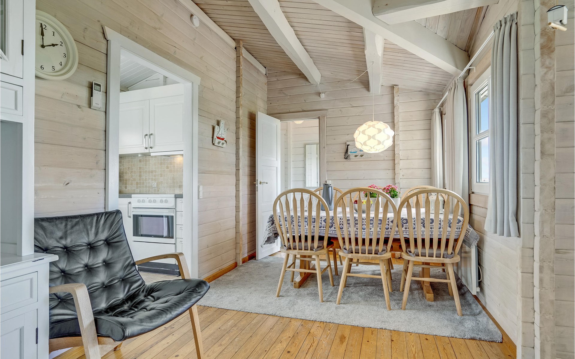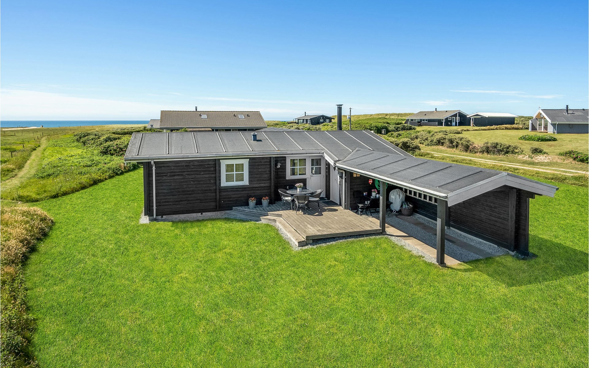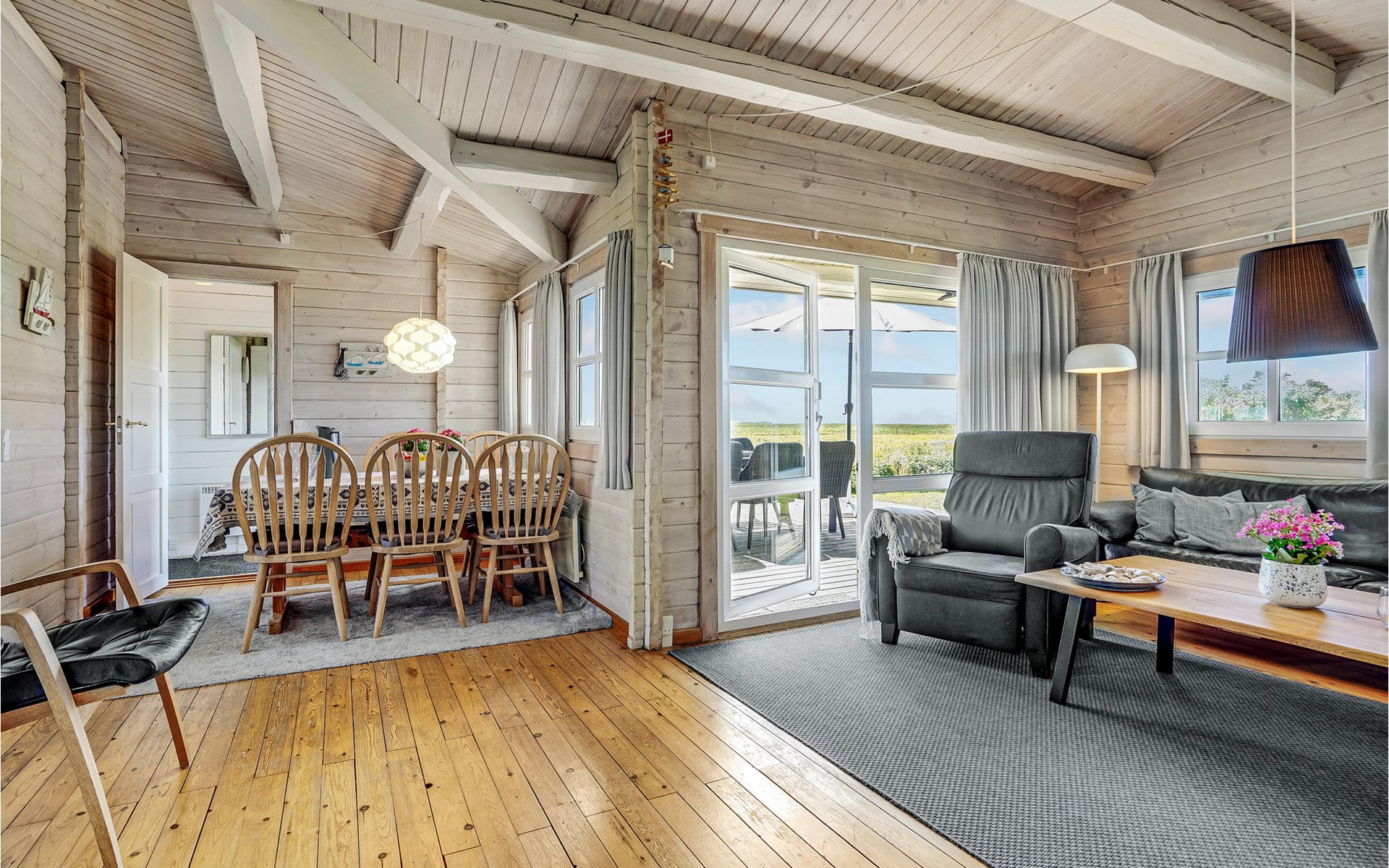Von diesem gepflegten Blockhaus können Sie die Aussicht auf die offene Landschaft und die Nordsee genießen. Die Innenräume sind hell und gemütlich eingerichtet. Sitzen Sie im Windschatten auf der schönen Terrasse, die von zwei Seiten umzäunt ist. Es gibt auch einen überdachten Teil der Terrasse. Im Garten sind Schaukel und Sandkasten für die Kinder aufgestellt.