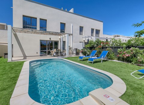 Träumen Sie von mediterranem Flair, Charme und ein großes Ferienhaus mit Pool, das keine Wünsche offenlässt? Dann brauchen Sie nicht weiter zu suchen und haben das perfekte Heim für Ihre Erholung gefunden. Das Innere empfängt Sie mit hohen Decken, sichtbaren Holzbalken und geschmackvoller Einrichtung, die Behaglichkeit versprüht. Genießen Sie das helle und komfortable Interieur, entspannen vor dem Kaminofen oder zaubern in der geräumigen Küche leckere Mahlzeiten. Auch die große Veranda ist der ideale Ort, um gemeinsam zu grillen, ein Buch zu lesen oder von den Gartenmöbeln den Kindern beim Spielen im Pool zuzuschauen.