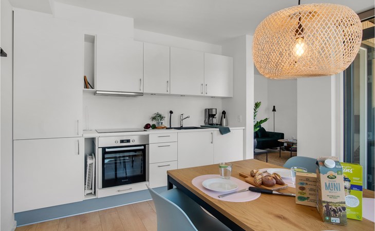 Willkommen in der komfortablen Wohnung, die ihre Gäste in fantastischer Lage nahe dem Strand erwartet. Kombinieren Sie hier herrliche Tage mit ausgelassenem Badevergnügen und spannende Ausflüge in der Umgebung, die einiges zu bieten hat. Helle, geschmackvoll möblierte Räume bilden den perfekten Rahmen um Ihre Auszeit vom Alltag. Bodentiefe Panoramafenster sorgen dafür, dass Sie sich der Natur und dem Meer ganz nah fühlen. Verbringen Sie hier gemütliche Abende, wenn Sie von einem Ihrer Ausflüge zurückkehren, beim gemeinsamen Essen mit Blick ins Freie oder auf dem Sofa mit Ihrer Lieblingsserie.