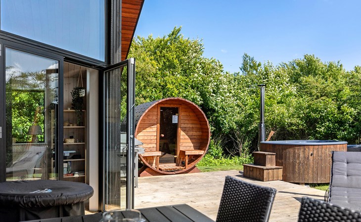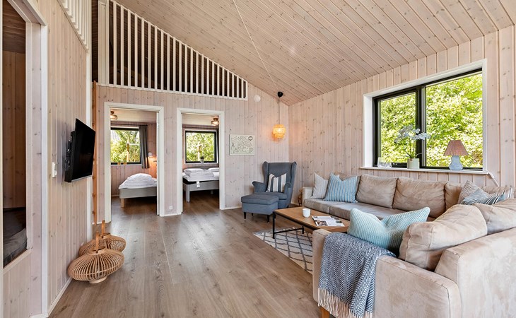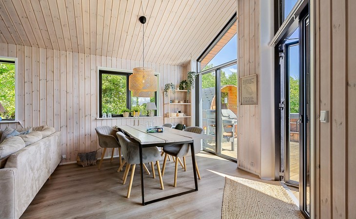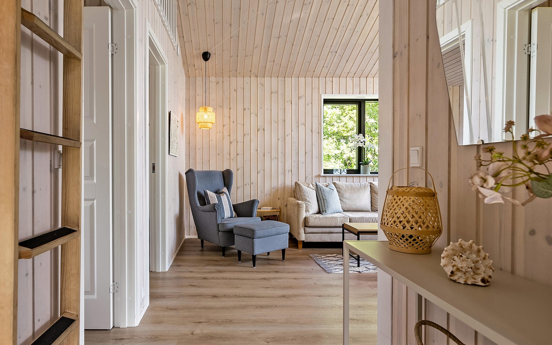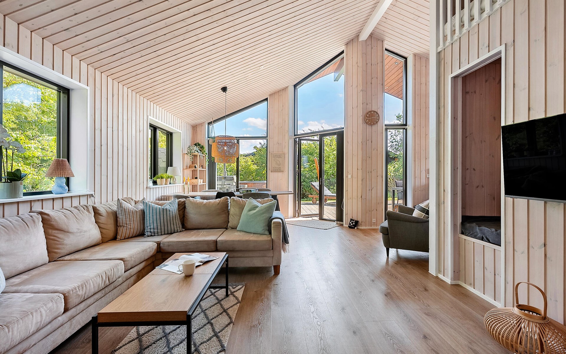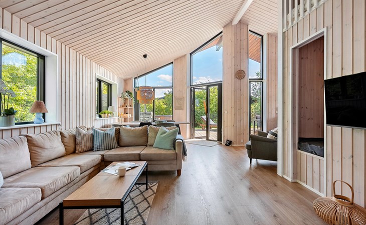 Herzlich Willkommen in Skovmose, wo Sie ein liebenswertes Sommerhaus erwartet. Ob im Loftbereich unter dem Dach, auf der Terrasse mit Blick auf den Garten, im finnischen Holzbad an der frischen Luft oder im offenen Wohnzimmer - Jedes Element der Einrichtung verströmt eine behagliche Atmosphäre, die Ihnen dabei helfen wird, es sich richtig gut gehen zu lassen.
