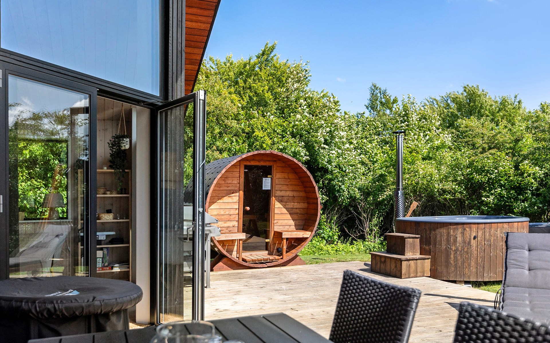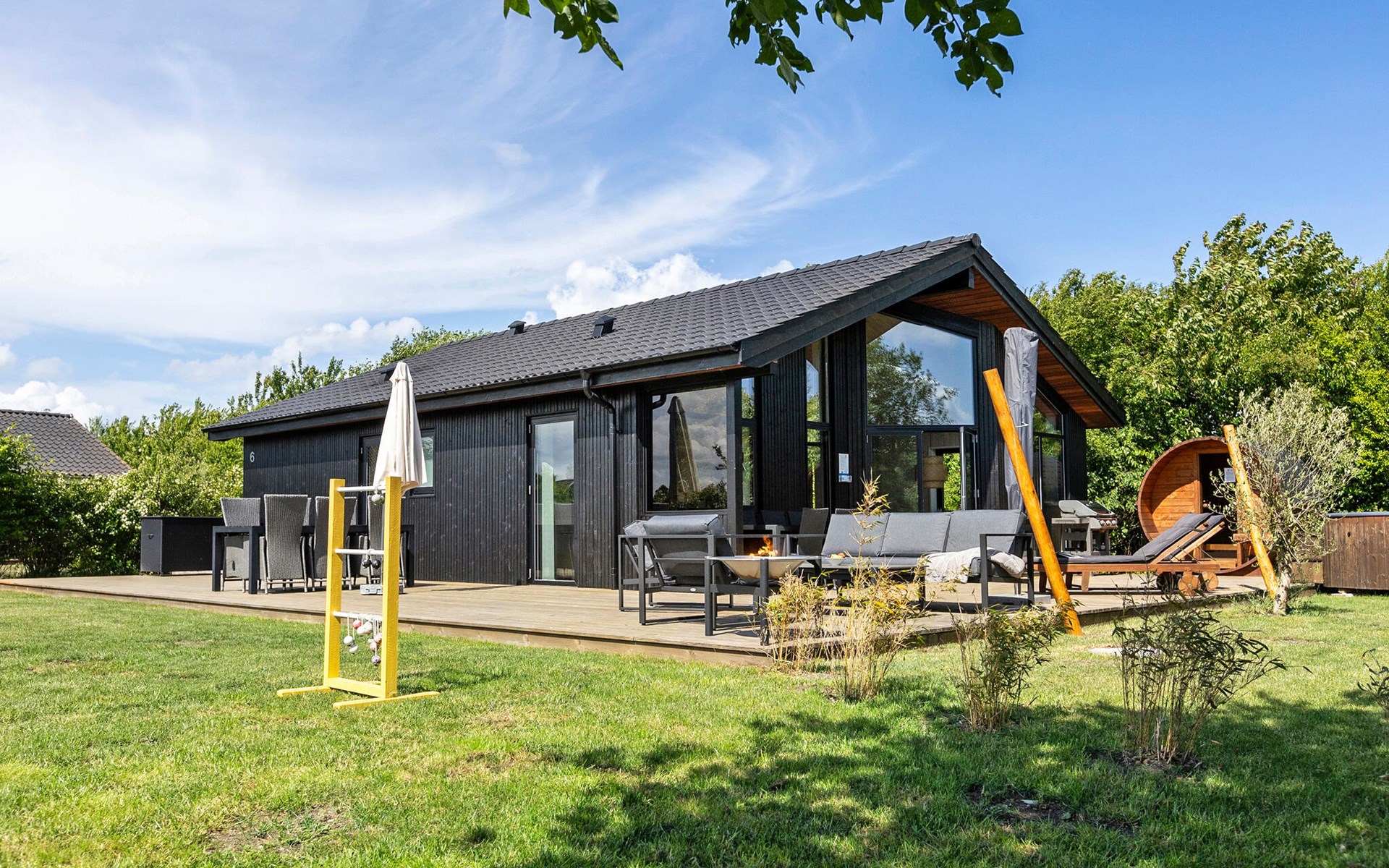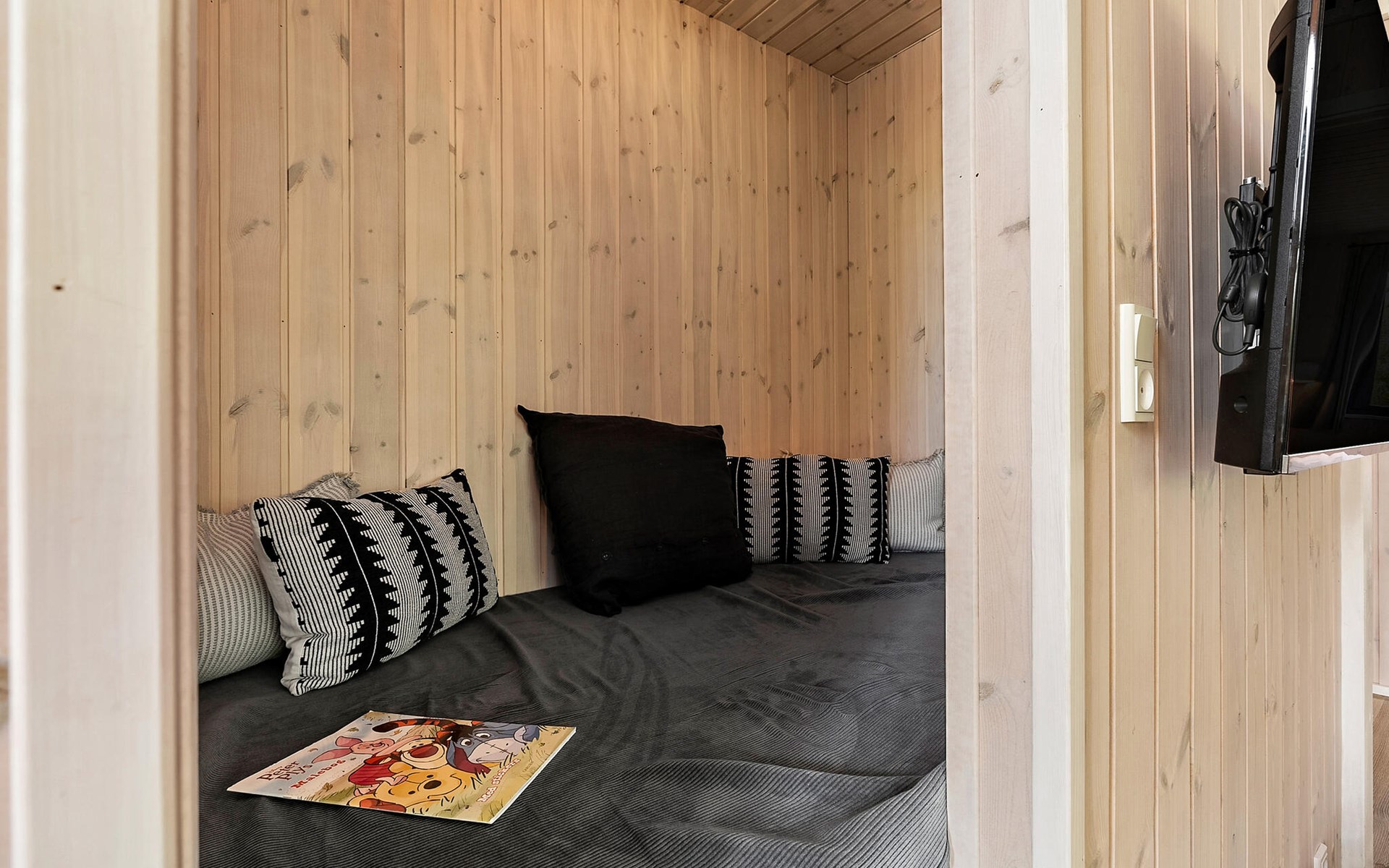 Herzlich Willkommen in Skovmose, wo Sie ein liebenswertes Sommerhaus erwartet. Ob im Loftbereich unter dem Dach, auf der Terrasse mit Blick auf den Garten, im finnischen Holzbad an der frischen Luft oder im offenen Wohnzimmer - Jedes Element der Einrichtung verströmt eine behagliche Atmosphäre, die Ihnen dabei helfen wird, es sich richtig gut gehen zu lassen.