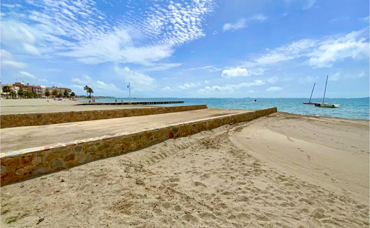 Gehen Sie an den herrlichen Strand und genießen dort Meer und Sonne, während Sie den Sand zwischen den Zehen spüren, sich vom Wind verwehen lassen oder einfach in der Sonne bräunen lassen. Nur 200 m von hier befindet sich der Pier, Ausgangspunkt für eine Bootsfahrt zu den Inseln des Mar Menor, der Isla Grosa und Farallón.