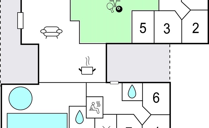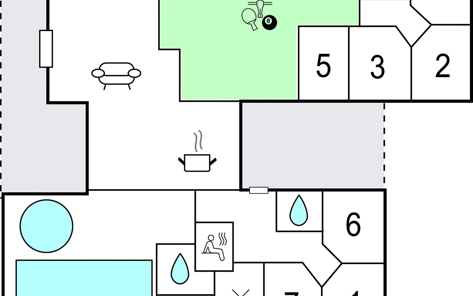 Die schöne Küche und das Esszimmer sind zum Wohnzimmer hin offen gestaltet. Dies ist der Ort, an dem Sie sich versammeln und an kühlen Tagen und Abenden die Wärme des Kamins genießen können. Eine weitere Hauptattraktion im Haus ist der schöne Pool mit Wasserrutsche, in dem Sie herumtollen und anschließend eine entspannende Massage im Whirlpool genießen können. Der Aktivitätsraum bietet Billard, Tischfußball, Airhockey, Tischtennis und viele andere Aktivitäten, sowie einen 75-Zoll-Bildschirm, der auch für den geschäftlichen Gebrauch geeignet ist. 7 gute Schlafzimmer, ein Loft und 3 schöne Badezimmer runden das Erlebnis ab.