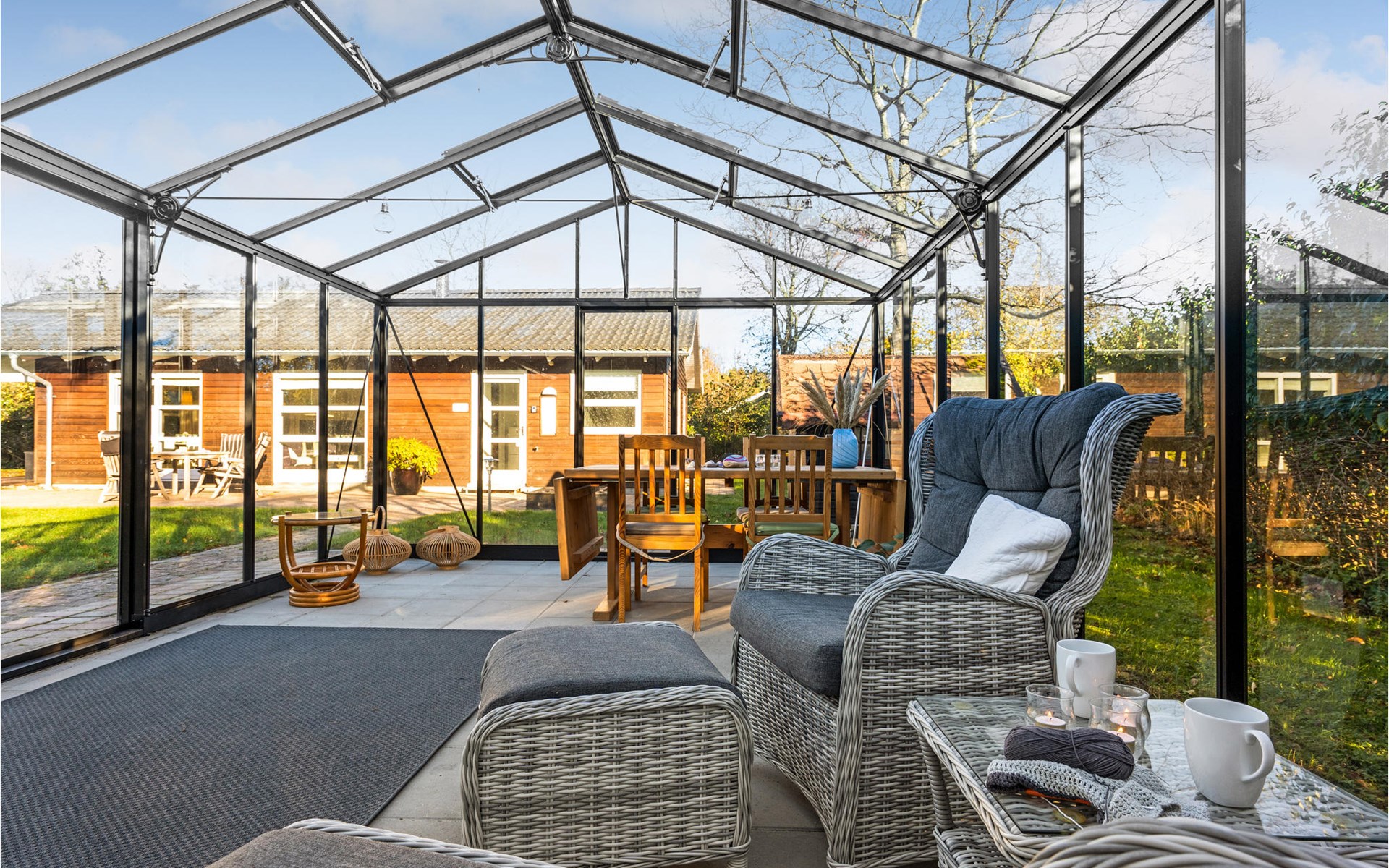 Ihr Ferienhaus liegt auf einem weitläufigen Naturgrundstück mit Terrassen und idyllischen Ecken. Machen Sie sich es in den Gartenmöbeln bei einem frisch gebrühten Kaffe oder einem kalten Getränk bequem, während die Kinder sich auf der Grünfläche austoben. Den perfekten Ort für einen stimmungsvollen Ausklang des Tages finden Sie im Gewächshaus, das dank des Terrassenheizers das ganze Jahr über benutzt werden kann.