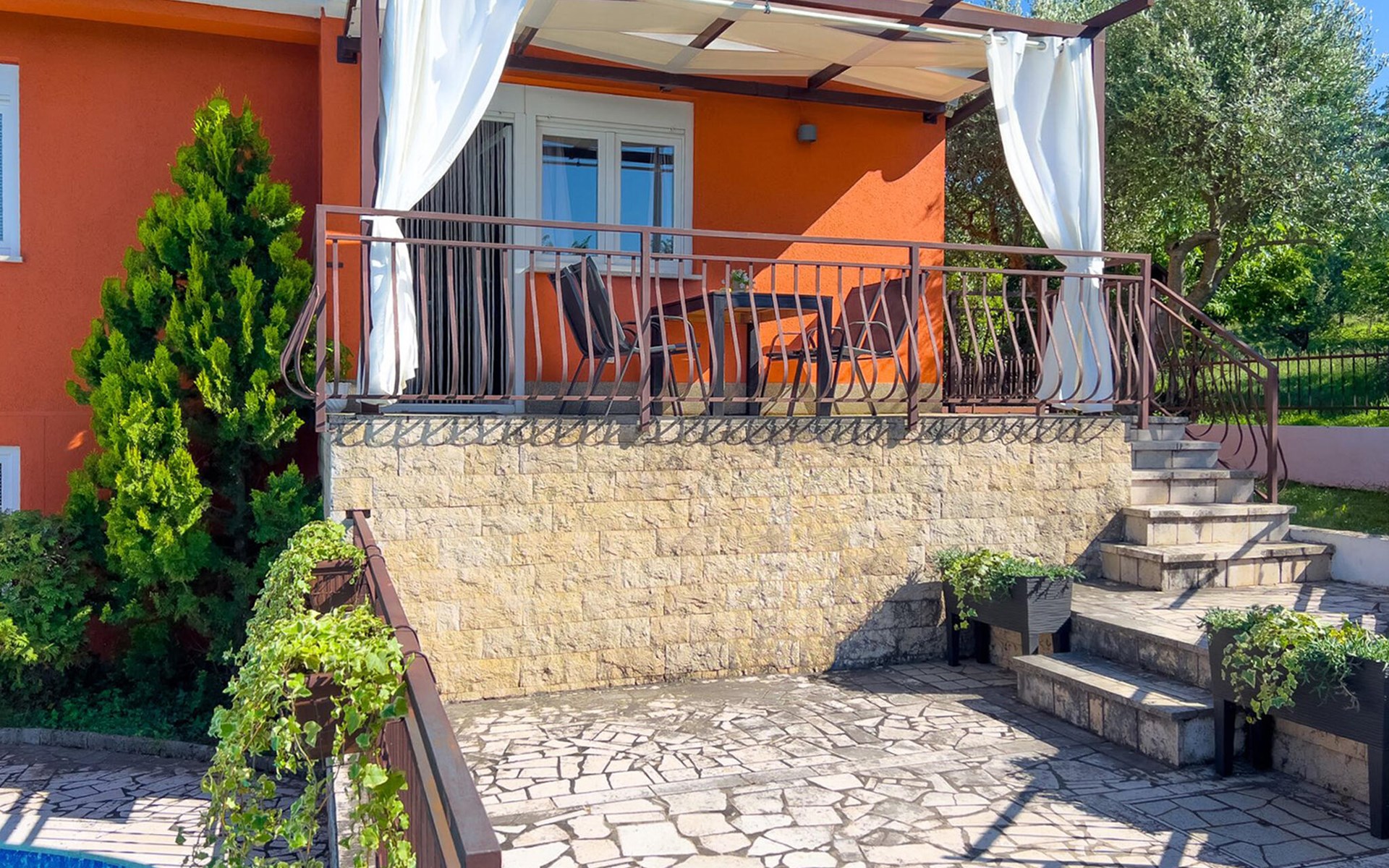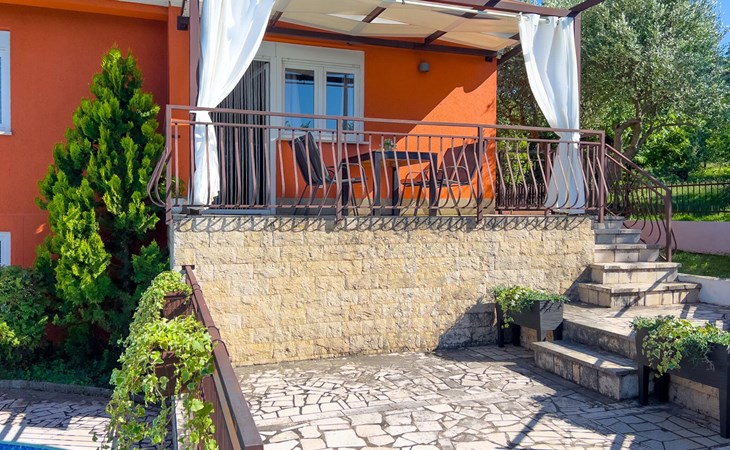 Dieses schöne Ferienhaus mit Pool befindet sich in ruhiger Lage in der kleinen Stadt Montižana in der Nähe der Stadt Poreč. Das Anwesen befindet sich auf einer Anhöhe, so dass Sie einen herrlichen Blick über die malerische Umgebung haben. Im umzäunten Garten finden Sie einen großen Swimmingpool und eine Terrasse mit Grill und Liegestühlen. Das Haus ist sehr komfortabel und modern eingerichtet, mit einem geräumigen Wohn- und Essbereich mit Zugang zu einer überdachten Terrasse. Im Keller des Hauses befindet sich ein Aktivitätsraum, in dem Sie Darts oder Tischfußball spielen können sowie auf einem Laufband und einem Heimtrainer trainieren können. In wenigen Minuten Autofahrt erreichen Sie ein Geschäft und mehrere Restaurants. Besuchen Sie die Stadt Poreč und genießen Sie dort eine große Auswahl an Unterhaltungs- und Kulturveranstaltungen sowie ein reichhaltiges gastronomisches Angebot.