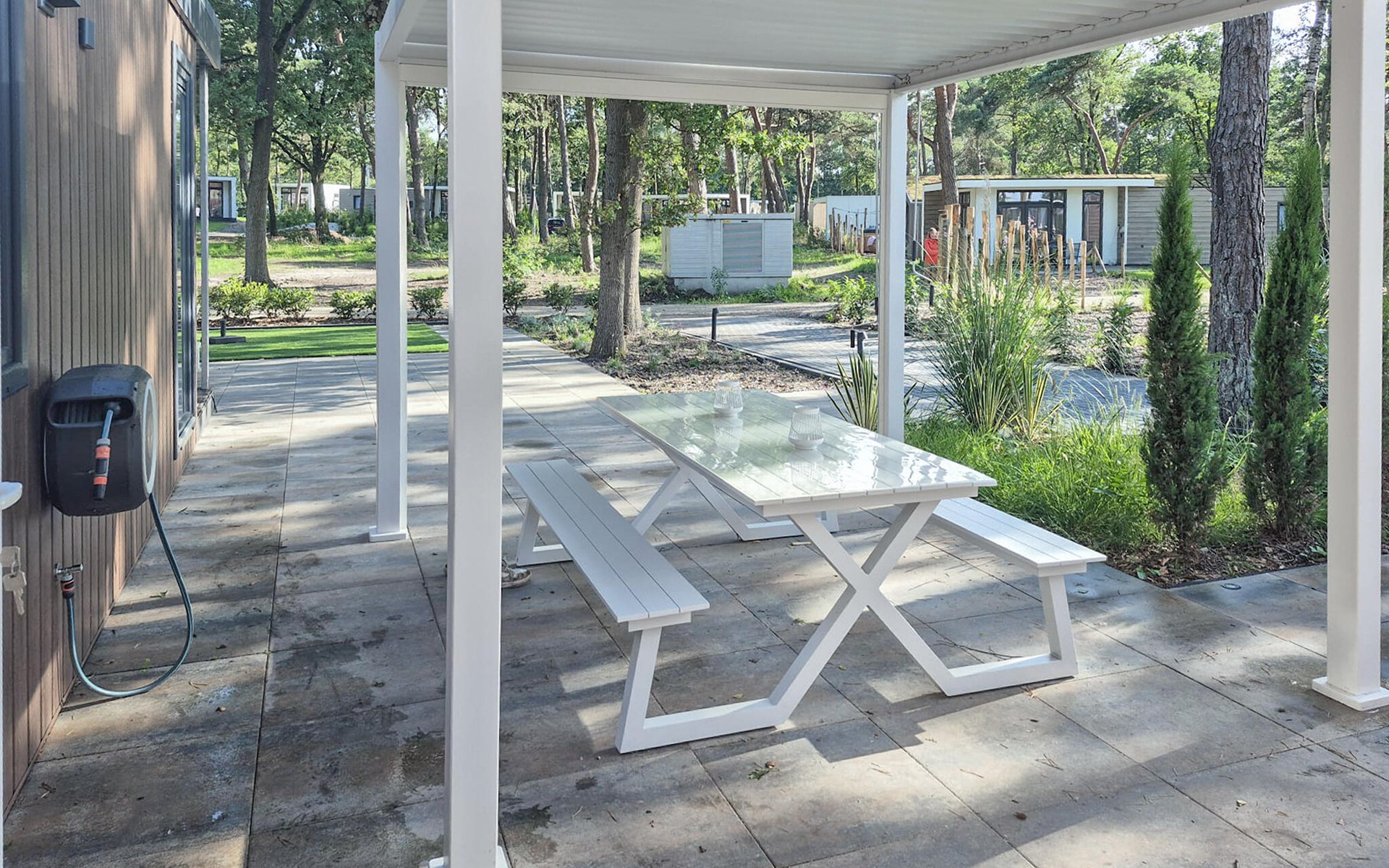 Vom Wohnbereich gelangen Sie direkt ins Freie, wo Sie sowohl sonnige als auch schattige Plätze nach Belieben nutzen können. Machen Sie es sich auf einem Liegestuhl bequem, genießen Sie ein wohltuendes Bad im Finnischen Holzbad oder bereiten Sie auf dem Grill ein köstliches Abendessen unter freiem Himmel zu.