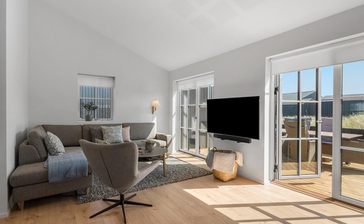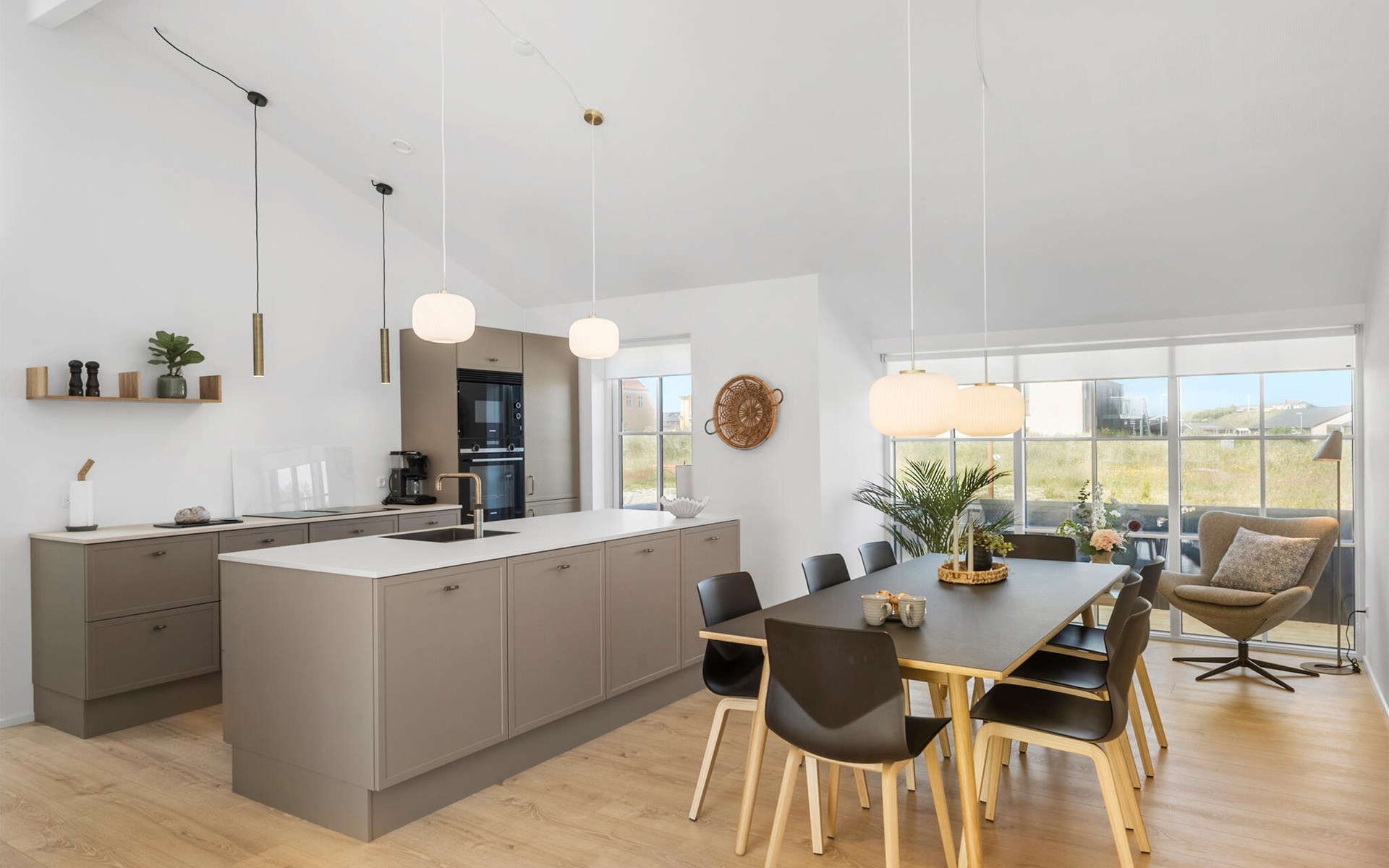 Mit hellen, geschmackvoll eingerichteten Räumlichkeiten begrüßt Sie dieses komfortable Urlaubsdomizil unweit des Sandstrands von Løkken. Freuen Sie sich auf gesellige Kochabende in der offenen Küche und gemeinsame Mahlzeiten am stilvoll beleuchteten Esstisch. Nach einem langen Tag an der frischen Seeluft lockt das gemütliche Sofa zu harmonischen Spieleabenden oder entspannten Lesestunden.