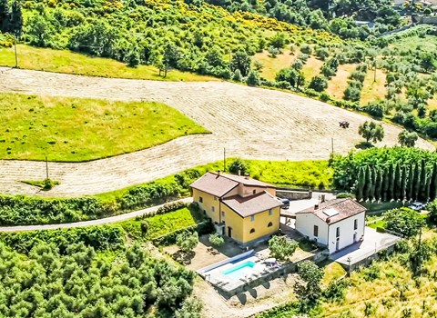 Ferienhaus mit Garten und privatem Aufstellpool 1 km von Crespina entfernt. Das Ferienhaus ist zwischen den Hügeln von Pisa gelegen, mit einem wunderschönen Blick auf die umliegende Landschaft: Wälder, Olivenhaine, Weinberge und Sonnenblumenfelder erfreuen das Auge. Auf vielen Landgütern in der Umgebung kann man Wein und ortstypische Produkte verkosten. Empfehlenswert ist selbstverständlich eine Besichtigung von Pisa mit seinem weltberühmten schiefen Turm (20 Km, Flughafen). Diejenigen, die etwas Entspannung suchen, werden in der nur 10 km entfernten Kleinstadt Casciana Terme schöne Thermaleinrichtungen. Im Ort Casciana (1 km) und Cenaia (ca. 2 km) befinden sich alle Geschäfte und Supermärkt. Die Kunststadt Florenz erreicht man leicht mit dem Auto in weniger als eine Stunde . Der Zufahrt zum Haus ist über eine kurze Strecke Schotterstraße.