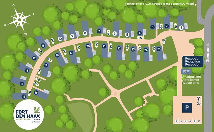 Im Park und in den Chalets können Sie kostenlos von superschnellem WLAN Gebrauch machen. Bei Ferienpark Fort den Haak gibt es für jedes Chalet einen eigenen Parkplatz für ein Auto. Nicht alle Chalets haben einen Parkplatz direkt beim Chalet, für einige Chalets befindet sich dieser auf dem Parkplatz. In den Check-in-Informationen steht, welcher Parkplatz zu Ihrer Unterkunft gehört. Kommst du mit einem Elektroauto? Keine Sorge! In unserem Ferienpark stehen zwei praktische Ladesäulen auf dem Zentralparkplatz bereit, um dein Auto aufzuladen.