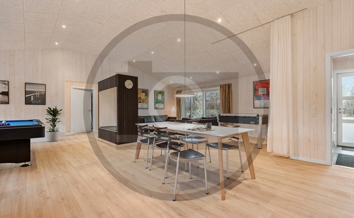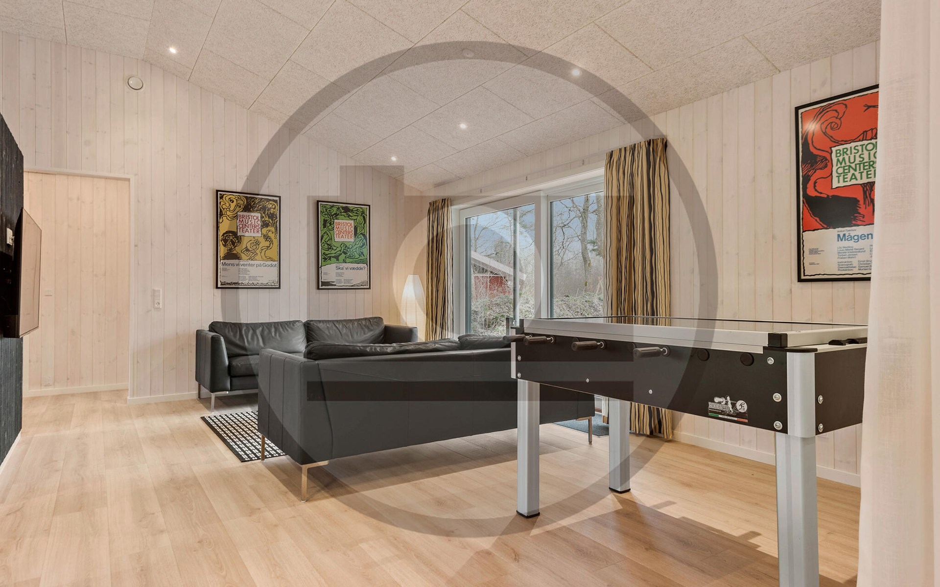 Gönnen Sie sich erholsame Tage in Ihrem behaglichen Ferienhaus, in dem Sie eine schöne Kombination aus Ruhe, Komfort und Naturverbundenheit erwartet. Im Inneren empfängt Sie ein stilvolles Ambiente, das dem Haus eine angenehme Ausstrahlung verleiht. Entspannen Sie sich im großzügigen Wohnbereich, dessen große Fensterfront nicht nur viel Licht hereinlässt, sondern auch den Blick ins Grüne öffnet. In der großzügigen, offenen Küche stehen Ihnen alle Möglichkeiten offen, gemeinsam kulinarische Köstlichkeiten zu zaubern. Genießen Sie diese anschließend im angrenzenden Essbereich genießen, ideal für entspannte Abende mit der Familie. Für vergnügliche Stunden steht Ihnen ein Billardtisch zur Verfügung.
