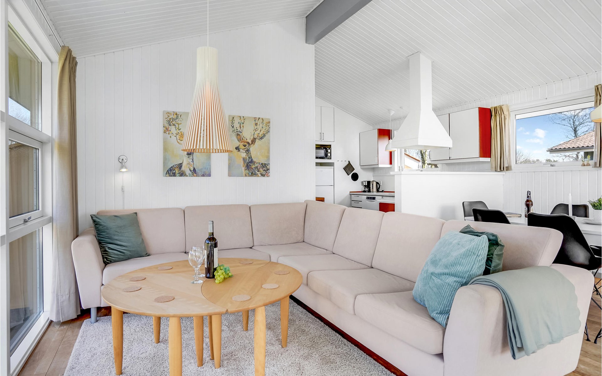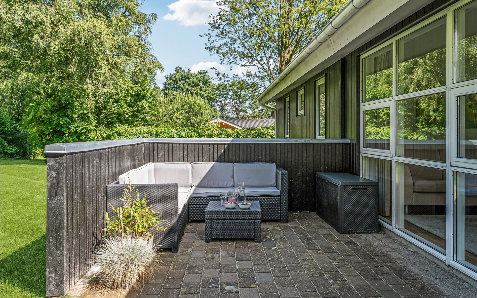 Dieses Holzhaus liegt auf einem schönen Gartengrundstück am Ende einer Sackgasse, in ruhiger Umgebung und am Rande des beschaulichen Ferienhausgebiets von Hejlsminde. Das Haus ist überall hochisoliert, damit sind niedrige Heizkosten zu erwarten. Die Einrichtung ist modern, die Möbel sind komfortabel und die Küche ist mit technischen Hilfsmitteln gut ausgestattet. Weiters sind ein Badezimmer mit Fußbodenheizung sowie ein Gäste-WC vorhanden. Wellness gibt es in Form eines Whirlpools und einer Sauna. Hejlsminde am Kleinen Belt ist von einer schönen Natur umgeben. Im Ort ist ein schöner Jachthafen. In der Umgebung gibt es gute Rad- und Wanderwege, die durch einen schöne Natur führen. Nicht weit entfernt liegt das Naturgebiet Skamlingsbanken. Nicht weit von Hejlsminde liegen Skamlingsbanken, Christiansfeld (Honigkuchen, Kachelöfen und Salami). Kolding bietet zudem viele Erlebnisse für Kinderfamilien und Kunstbegeisterten. Besuchen Sie z. B. das Museum Trapholt. Es gibt auch einen Spielepark, der gratis ist. Auch ein großes Einkaufszentrum in Kolding lädt zum Bummeln. Kolding beherbergt auch einen Spielepark, in dem alles gratis ist.