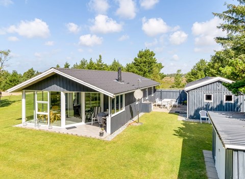 Kommen Sie mit Ihrer Familie in diese ruhige Wohnsiedlung bei Bjerregård und fühlen sich in dem herrlichen Ferienhaus wie zuhause. Hier finden Sie alles vor, was Sie zum Entspannen und Ausruhen brauchen. Egal, ob Sie zusammen kochen wollen oder es sich im Wohnzimmer mit einem wärmenden Kaminfeuer gemütlich machen, hier finden Sie schöne räume vor. Spielen Sie am Küchentisch Karten und genießen den Ausblick auf die Dünen. Rund um das Haus werden Sie zudem schöne und gemütliche Ecken entdecken. Genießen Sie die Sonne und kommen Sie zu Grillabenden auf der Terrasse zusammen.