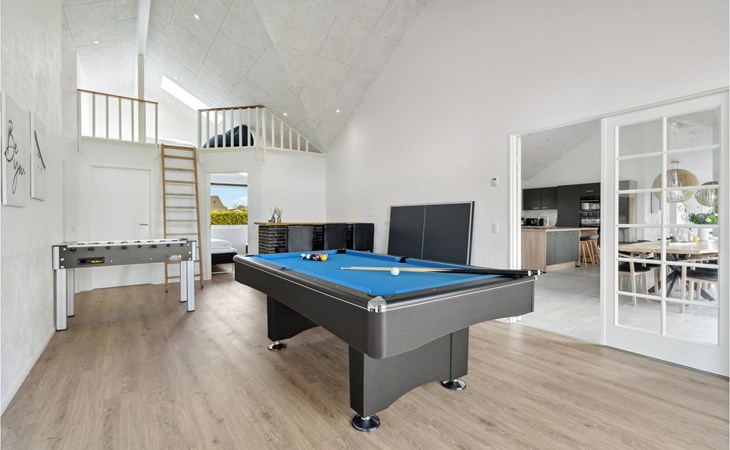 In ansprechender Lage begrüßt Sie dieses einladende Ferienhaus, von dem Sie zu Fuß das Meer erreichen. Das komfortable und moderne Haus bietet alles, was Sie für einen gelungenen Urlaub brauchen und ist der ideale Ort für eine unvergessliche Auszeit mit einer größeren Gruppe. In den hellen Räumen können Sie es sich mit der ganzen Familie gemütlich machen, hier ist viel Platz für gemeinsame Aktivitäten. Der Pool bietet stundenlangen Spaß für Groß und Klein bei jeder Wetterlage, in der Sauna können Sie sich nach einem langen Strandspaziergang aufwärmen. Genießen Sie gemeinsame Mahlzeiten am langen Esstisch, hier können Sie nach einem herrlichen Urlaubstag auch einen gemütlichen Spieleabend veranstalten.
