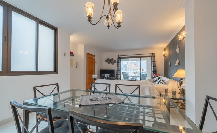 Ein angenehmes, helles Ambiente prägt die Räume dieser Ferienwohnung. Es befindet sich im 3. Stock eines Stadthauses. Das kombinierte Wohn- und Esszimmer mit TV ist ein gemütlicher Gemeinschaftsbereich zum Entspannen und gemeinsamen Essen im Innenbereich. Von hier aus gibt es einen direkten Zugang zum Balkon. In der geräumigen, voll ausgestatteten Küche ist bei Bedarf eine Selbstversorgung problemlos möglich. Hier ist sogar Platz für einen weiteren Tisch. Und von diesem Zimmer aus können Sie auch direkt auf den Balkon treten. Dies gilt auch für die drei Schlafzimmer, von denen eines mit einem eigenen Duschbad ausgestattet ist. Ein weiteres Badezimmer mit Dusche vervollständigt die Räumlichkeiten. Aufgrund der Warm-Kalt-Klimaanlage eignet sich „Atico Roger de Flor“ das ganze Jahr über für komfortable Aufenthalte.