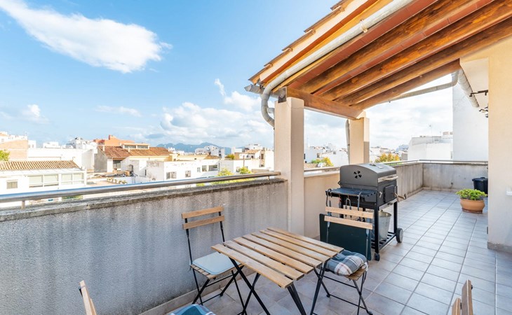 Wer sich für diese Ferienwohnung auf Mallorca entscheidet, kann im Urlaub getrost das Auto stehen lassen. Die ideale Erreichbarkeit aller Annehmlichkeiten des täglichen Bedarfs sowie des Strandes schafft ein hohes Maß an Flexibilität und Spontaneität. Aber auch direkt am Domizil haben Sie mehrere Möglichkeiten, Zeit im Freien zu verbringen. Mehrere möblierte Terrassenbereiche – überdacht oder direkt unter dem Himmel – laden dazu ein, mitten im Dorf zu entspannen und das Dorfgeschehen aus der Vogelperspektive zu beobachten. Abends können Sie sich zum gemeinsamen Grillen treffen und den Tag gesellig ausklingen lassen.