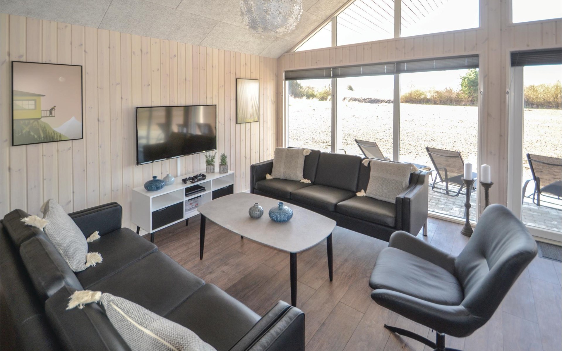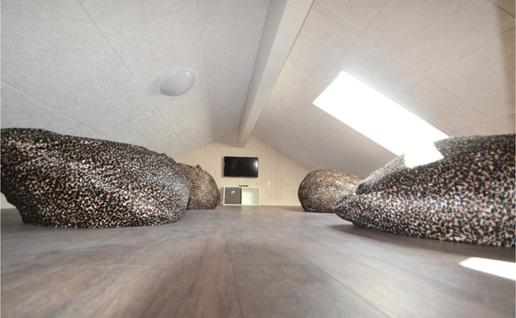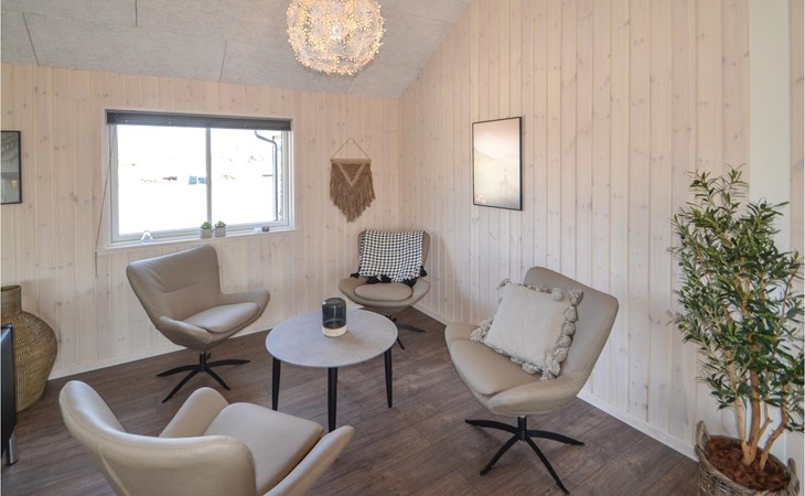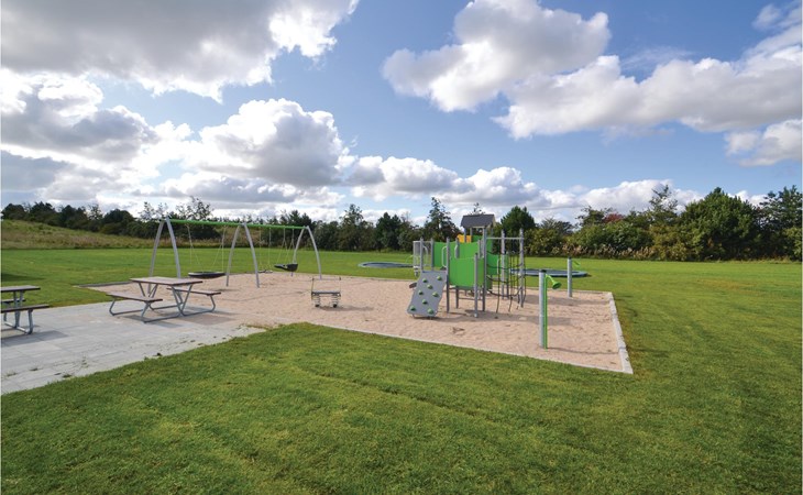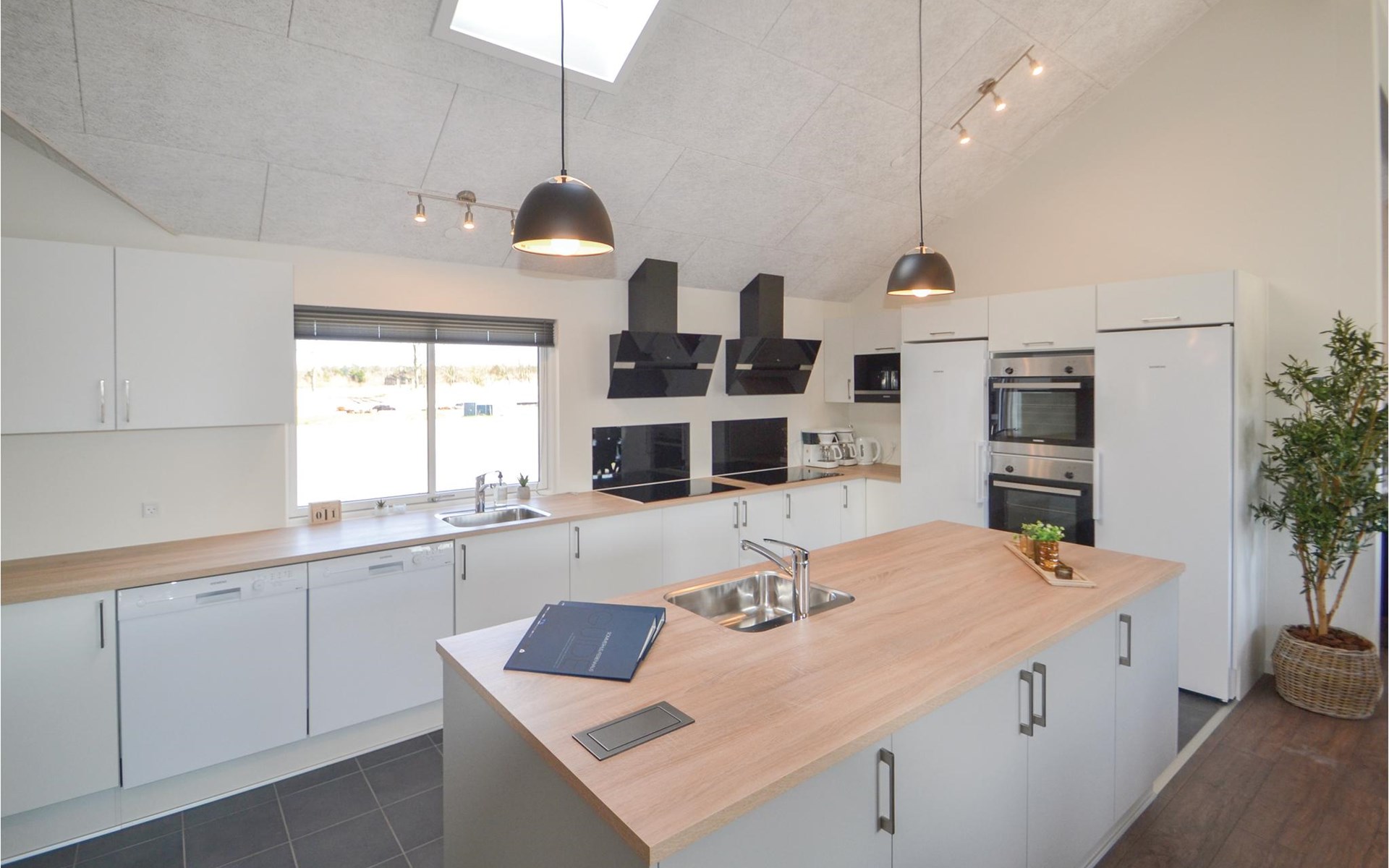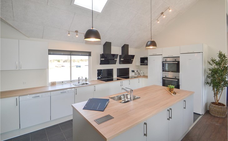 Insgesamt verfügt das Ferienhaus über fünf Badezimmer. Auf der großen, teilweise überdachten Terrasse können Sie grillen und die dänische Sonne genießen. Es gibt auch einen Sandkasten und ein Trampolin. Das Haus ist auch mit Ladestecker für Elektroautos ausgestattet.