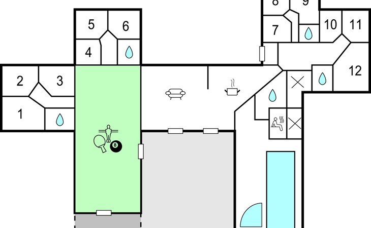 Die Stadt Aarhus ist in weniger als einer Stunde zu erreichen. Das Haus bietet Platz für bis zu 30 Personen. Genießen Sie den 23 m² großen Pool oder den Whirlpool, hier finden Sie auch eine schöne Sauna und eine Wasserrutsche. Ihnen steht ein großer Aktivitätsraum zur Verfügung, mit Pool / Billardtisch, Playstation 4, Tischtennis, Darts und Tischfußball. Gönnen Sie sich eine erfrischende Abkühlung in der hauseigenen Bar mit Kühlschrank, die ebenfalls im Aktivitätsraum ist.