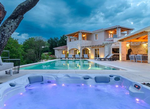 Auf der weitläufigen Dachterrasse mit hochwertigen Möbeln und sagenhaften Meerblick können Sie den Tag mit einem Glas Wein ausklingen lassen, während die Terrasse am Pool ideal ist für erfrischende Momente unter der kroatischen Sonne.