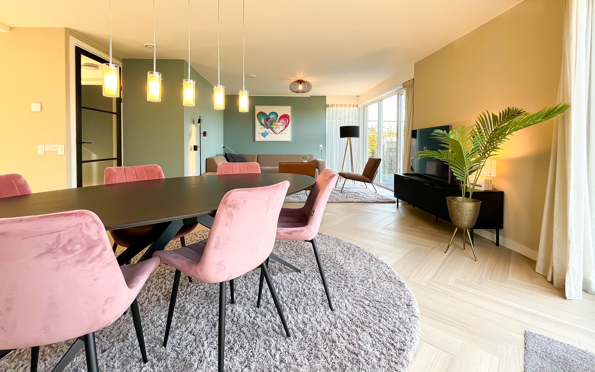 Diese Droomvilla ist ganz neu gebaut und mit modernen Möbeln eingerichtet. Die Vorderseite des Hauses ist mit einem Zaun abgeriegelt. Beim Betreten fühlt man sich sofort zu Hause in der geräumigen Eingangshalle mit Garderobe, separatem WC und Treppe nach oben. Das stimmungsvolle Wohnzimmer bietet einen komfortablen Sitzbereich und einen Fernseher, perfekt für gesellige Abende. An dem Esstisch mit Platz für sechs Personen genießt man gemeinsam köstliche Mahlzeiten. Die offene Küche ist komplett ausgestattet mit allem, was man braucht: Induktionskochfeld, Kühlschrank, Gefrierschrank, Backofen, Mikrowelle, Geschirrspüler, Quooker, Wasserkocher, Kaffeemaschine (Filtern), Nespresso-Maschine (Tassen selbst mitbringen) und Milchaufschäumer sowie einer Airfryer. Darüber hinaus gibt es einen praktischen Raum mit Waschmaschine und Trockner für zusätzlichen Komfort.