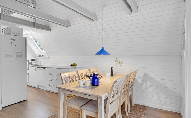 In einem attraktiven Ferienhausgebiet auf Røsnæs finden Sie dieses geschmackvoll eingerichtete Ferienhaus. Es befindet sich auf einer Anhöhe und hat einen Blick auf das Meer. Das Ferienhaus ist charmant eingerichtet mit einer offenen Küche zum Wohnzimmer, einem schönen Bad und einem Schlafzimmer mit einem Einzelbett im Erdgeschoss. Eine Treppe mit Handlauf führt zum Schlafzimmer im ersten Stock mit einem Doppelbett (nicht für Personen mit Gehbehinderung). Vom Wohnzimmer aus kommen Sie auf eine abgelegene Terrasse, wo Sie die Sonne genießen, mit einem Buch entspannen und träumen können. Im Annex befinden sich 2 weitere Schlafplätze, die perfekt für ein Paar oder Teenager geeignet sind. Hier gibt es auch Spielzeug für die jüngsten Familienmitglieder.