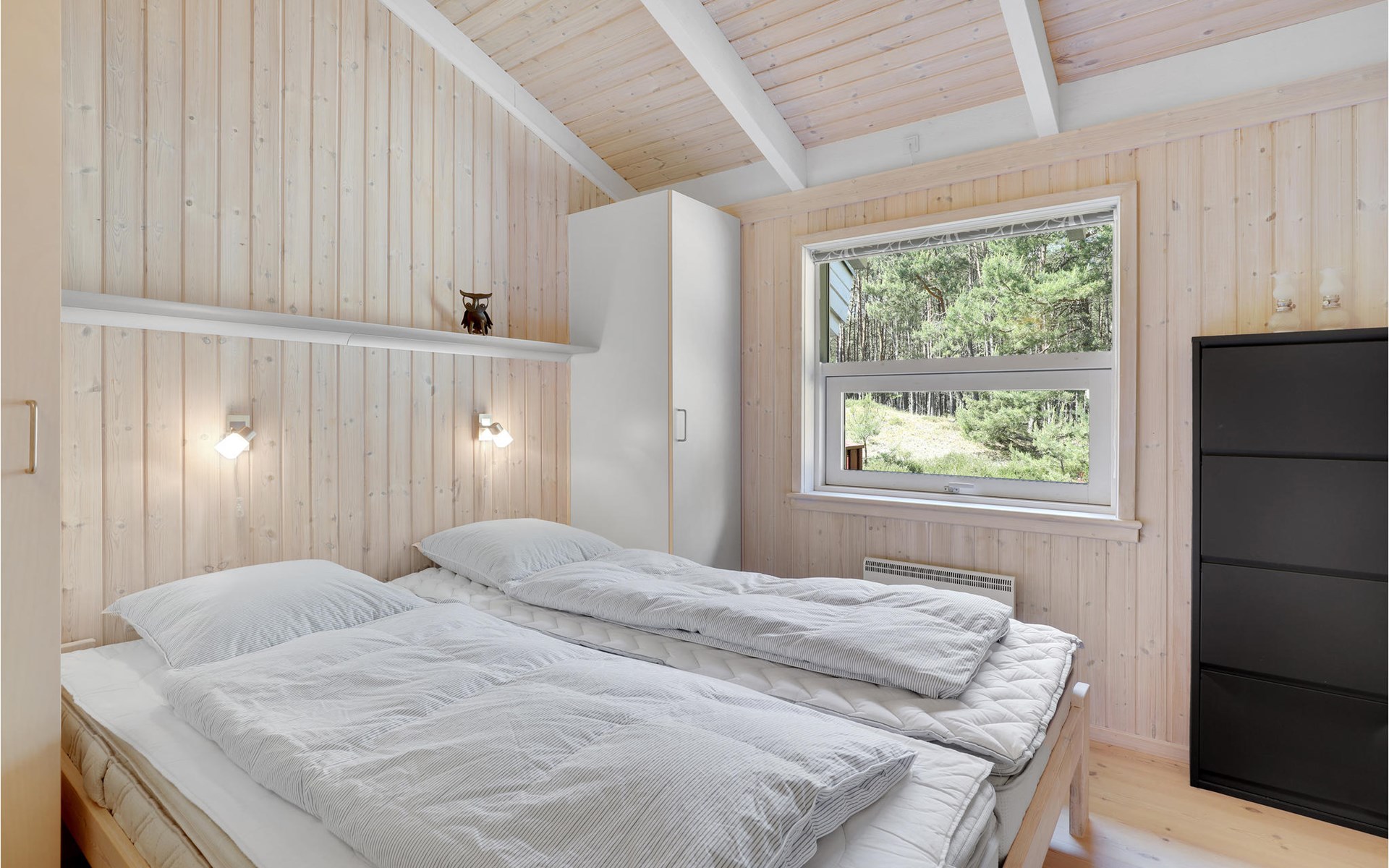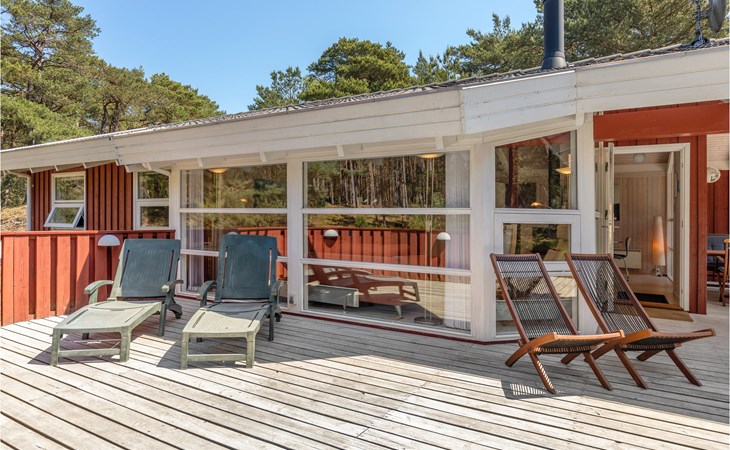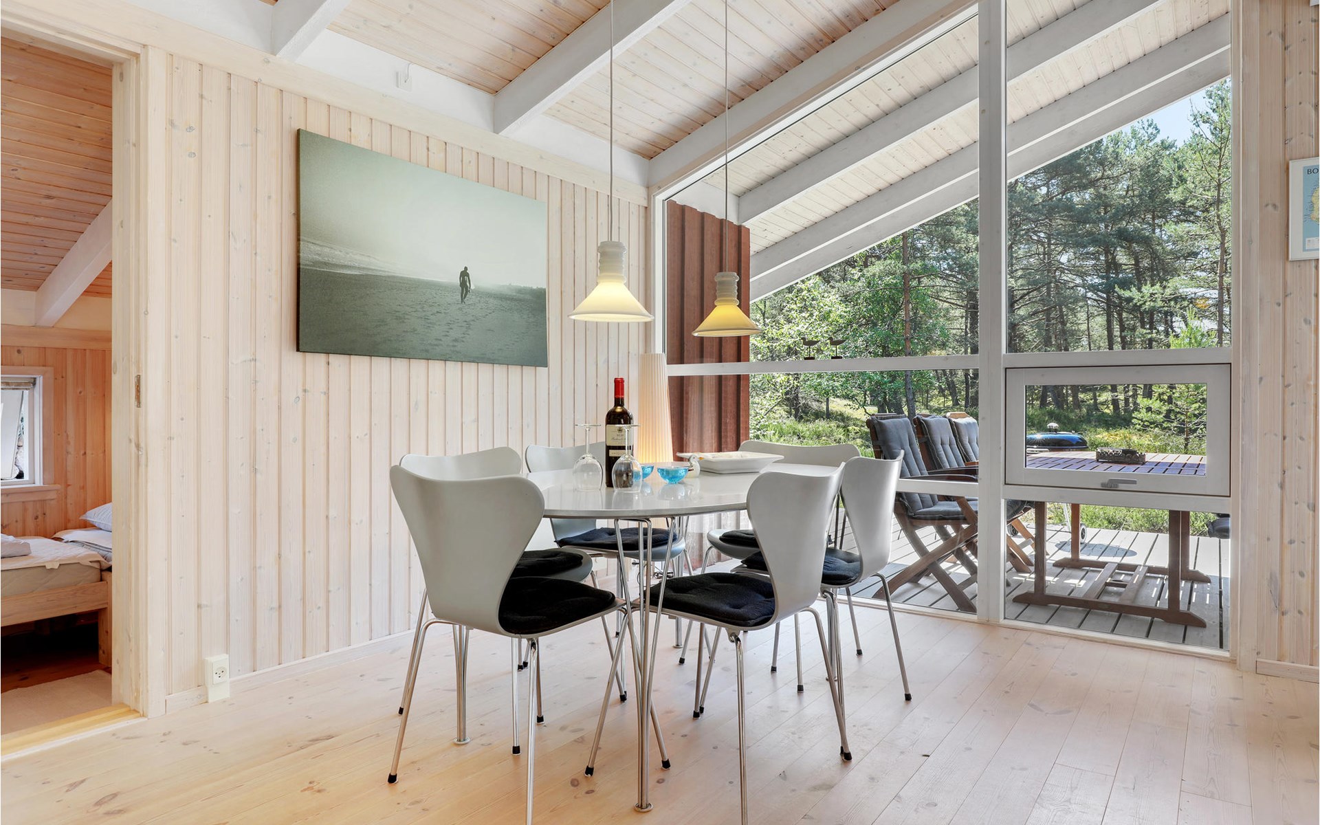 In einem attraktiven Ferienhausgebiet finden Sie dieses gepflegte Holzhaus auf einem schönen Naturgrund. Die schöne Einrichtung ist modern, die Möbel und der Kaminofen versprechen ein behagliches Urlaubserlebnis. Vom Wohnzimmer haben Sie einen Blick auf die schöne Umgebung. Hübscher Essbereich und schöne, offenen Küche. In diesem Qualitätshaus haben Sie auch 2 Badezimmer, wovon eines mit einer Sauna ausgestattet ist. Des Weiteren sich hier 2 große Schlafzimmer und 1 Kinderzimmer vorhanden. Der Hems ist gut für Ihre Kinder zum Spielen und Entspannen geeignet. Eine Holzterrasse sorgt für schöne Grillabende und viele entspannende Stunden in der Sonne. Zum Strand und den Dünen ist es nicht weit, hier können Sie auch gut wandern und die schöne Natur Bornholms erleben. Ein Haus von hoher Qualität in ungestörter Lage.