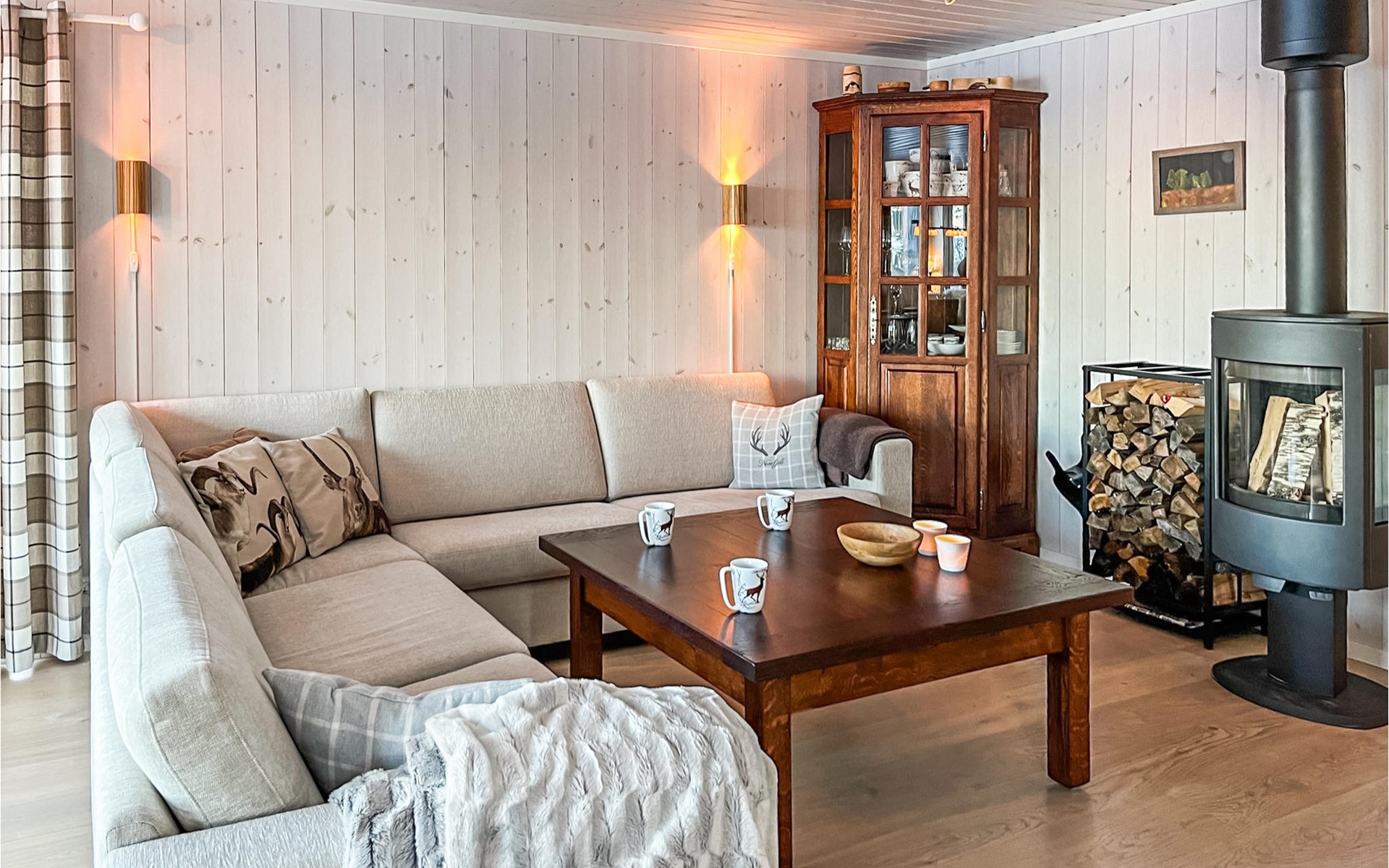 Entspannen Sie hier in hellen Räumen und stilvollem Ambiente und genießen Sie in vollen Zügen die gemeinsame Zeit sowie eine Umgebung, die hervorragende Bedingungen für Aktivitäten in der Natur zu jeder Jahreszeit bietet. Nach einem erlebnisreichen Tag können Sie am Esstisch gemeinsam Spiele spielen oder es sich auf dem Sofa gemütlich machen, im Kaminofen anfeuern und noch lange beim Prasseln der Flammen in wohliger Wärme zusammensitzen.