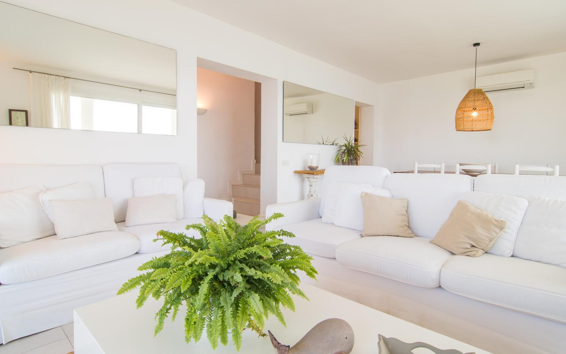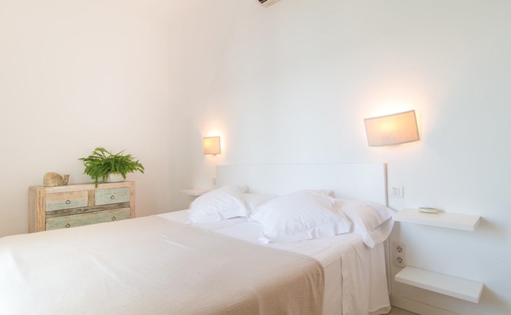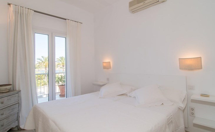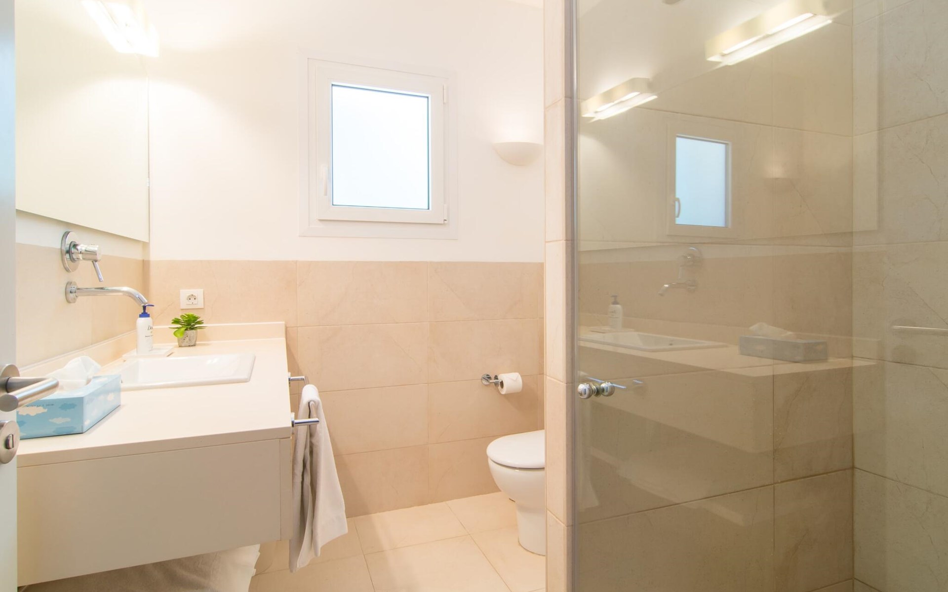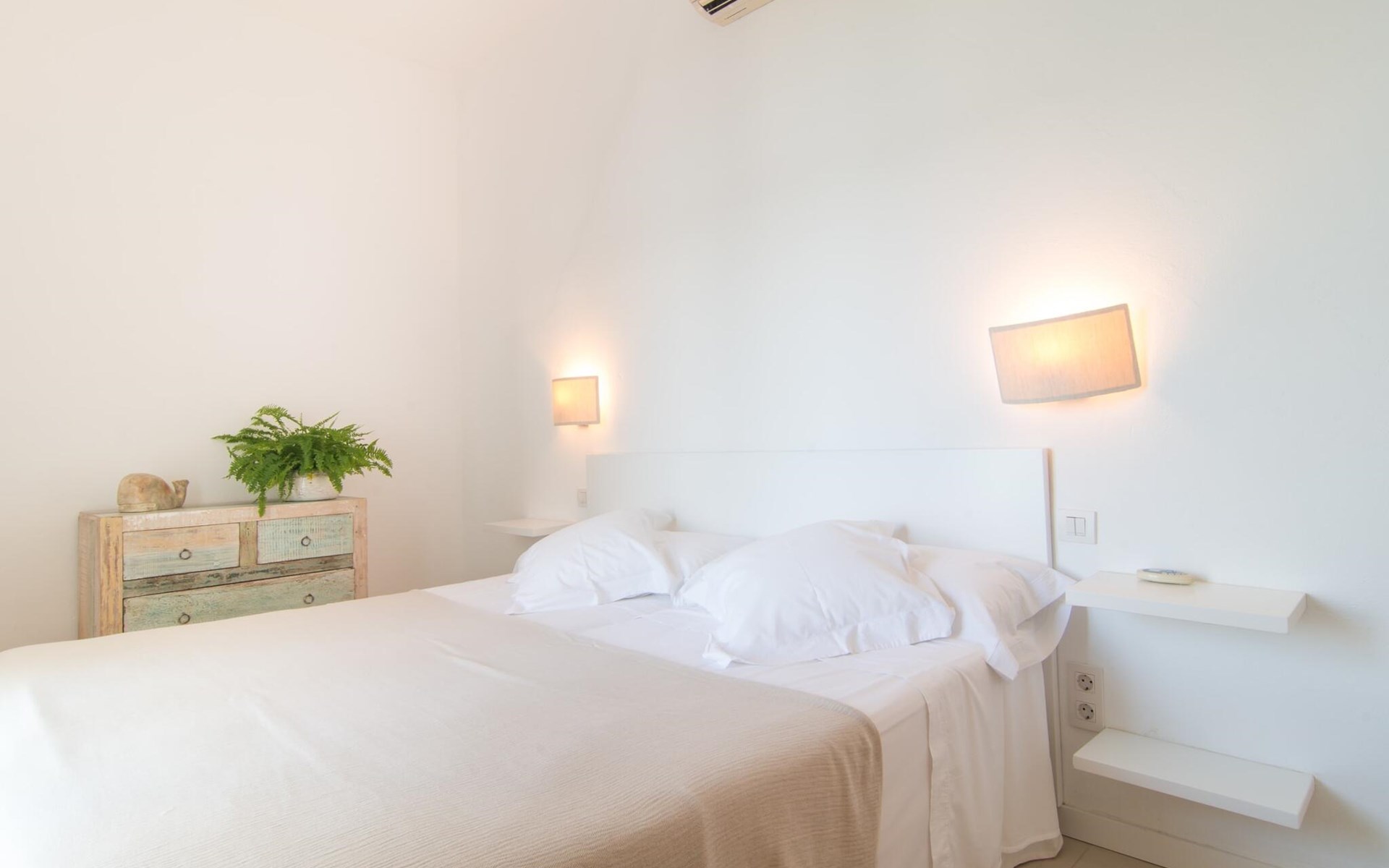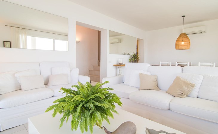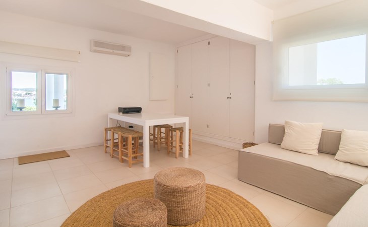 Das Gebäude erstreckt sich über zwei Etagen und nimmt eine Gesamtfläche von rund 270 Quadratmetern ein. Die zahlreichen Fenster und die fast ausschließlich hellen Farben durchfluten das Haus mit Sonnenlicht und strahlen eine rundum extravagante Aura aus. Ein kombiniertes Wohn-/Esszimmer, das zum Hafen ausgerichtet ist, bietet gleichzeitig eine äußerst gemütliche Sofalandschaft mit einem praktisch installierten Fernseher sowie einen langen, edlen Esstisch, an dem sechs Personen Platz finden. Ein zusätzlicher, kindgerecht gestalteter Aufenthaltsraum ist in die Architektur der Villa integriert. Daneben gibt es Kindermöbel und ein zusätzliches Sofa zum Entspannen. Dieser Raum ist ein ideales Spielzimmer, in das man sich bei Bedarf auch mit den Kleinen zurückziehen kann. Die pflegeleichte Küche im edlen Design verfügt über alles, was Sie für den Alltag benötigen, inklusive Wasserkocher und Filterkaffeemaschine. Die klimatisierten Schlafzimmer (zwei davon mit eigenem Bad) sind großzügig geschnitten, mit hochwertigen Möbeln ausgestattet und weisen ein sehr elegantes Design auf. Der bewusst sparsame Einsatz von Dekoration verleiht diesen Räumen einen hellen und einzigartigen Charakter, der eine angenehme Ruhe fördert. Die traumhafte Aussicht, teilweise auch vom Schlafzimmer aus sichtbar, macht diesen Ort zum Gipfel des Komforts. In allen Schlafzimmern stehen zwei 0,90 x 2,00 m große Betten zur Verfügung. Das geschmackvolle Design setzt sich auch in den Badezimmern fort. Diese verfügen über ein äußerst modernes Design, sind sehr komfortabel und großzügig geschnitten. Und von hier aus kann man einen Teilmeerblick genießen!