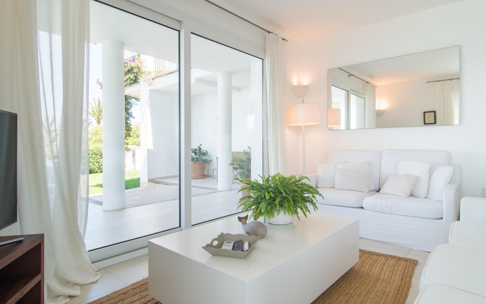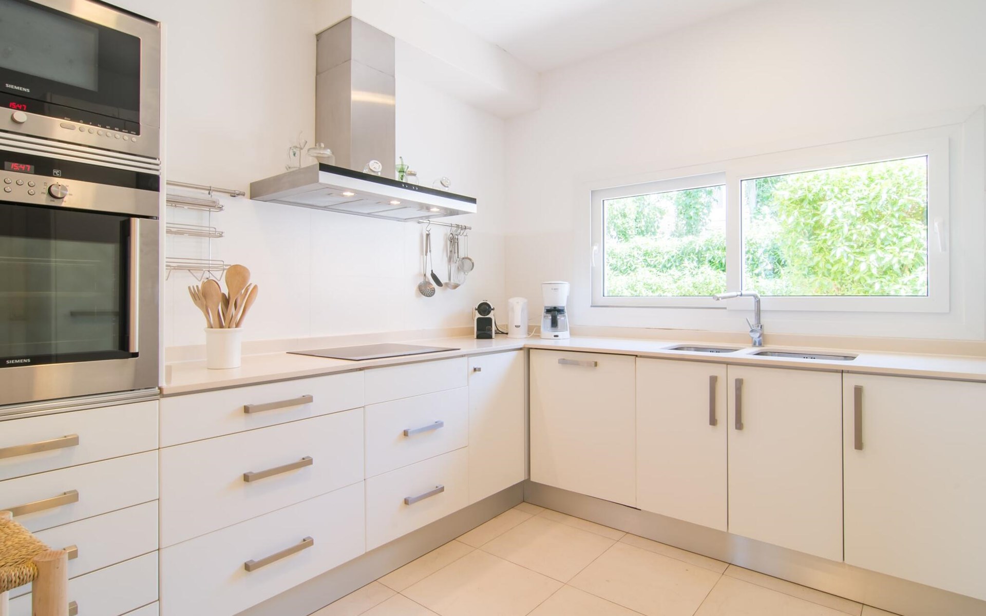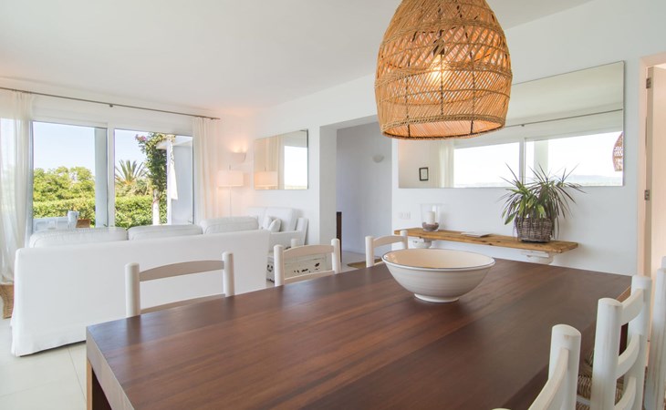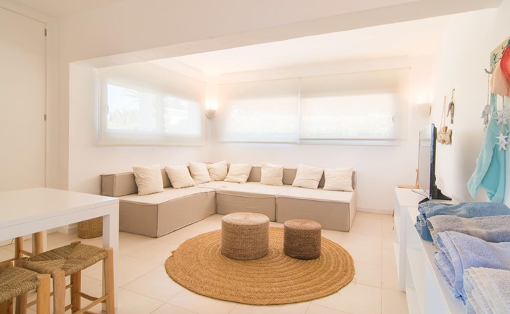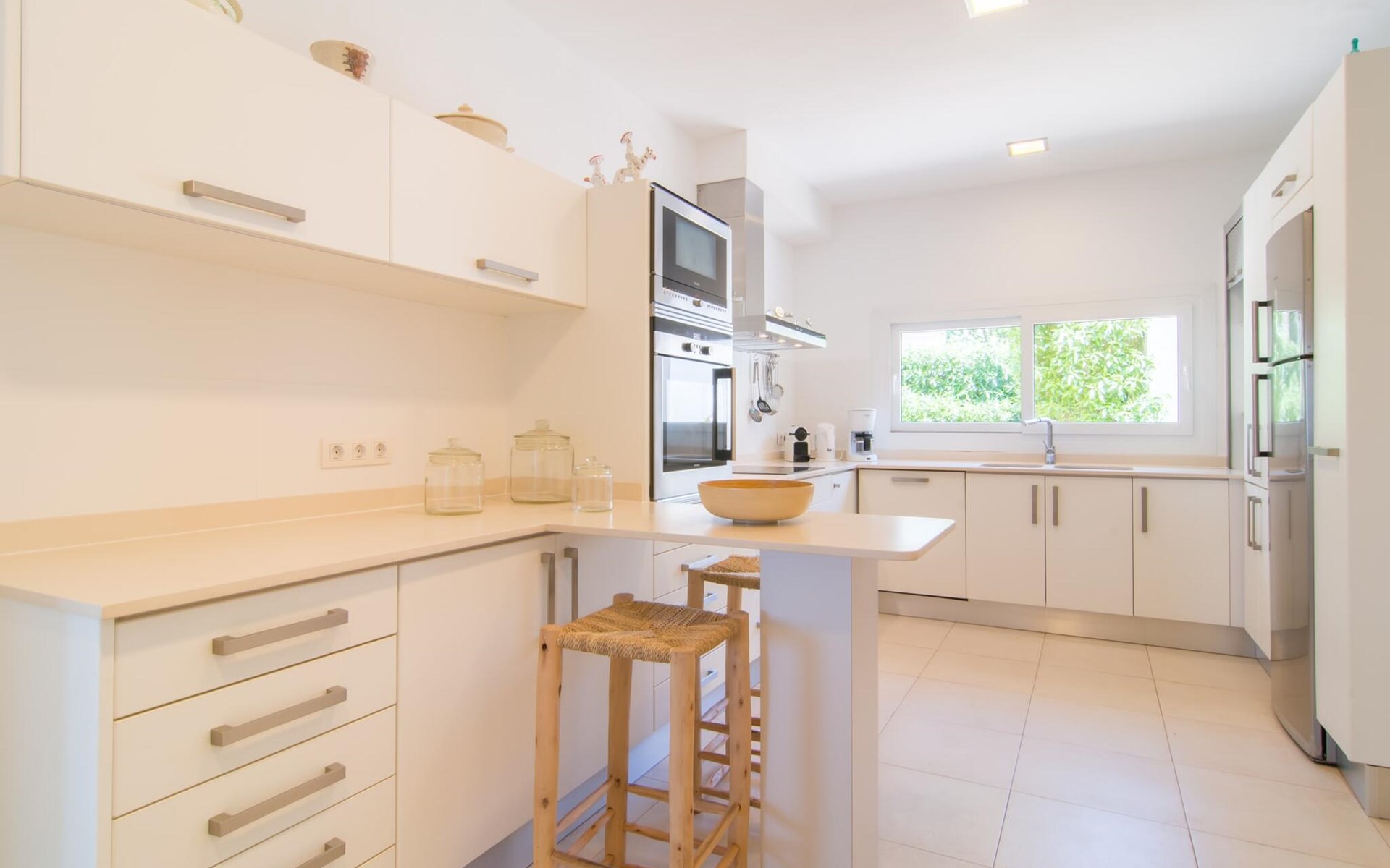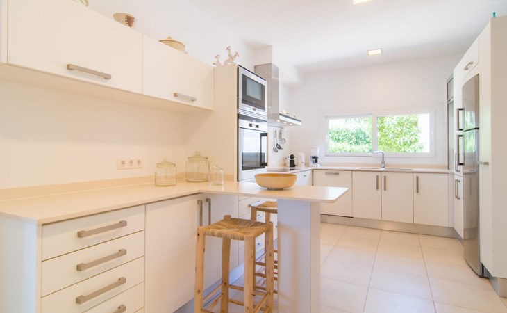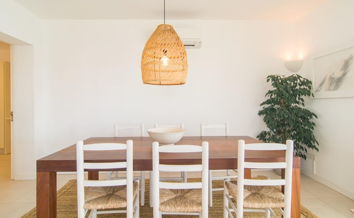 Das Gebäude erstreckt sich über zwei Etagen und nimmt eine Gesamtfläche von rund 270 Quadratmetern ein. Die zahlreichen Fenster und die fast ausschließlich hellen Farben durchfluten das Haus mit Sonnenlicht und strahlen eine rundum extravagante Aura aus. Ein kombiniertes Wohn-/Esszimmer, das zum Hafen ausgerichtet ist, bietet gleichzeitig eine äußerst gemütliche Sofalandschaft mit einem praktisch installierten Fernseher sowie einen langen, edlen Esstisch, an dem sechs Personen Platz finden. Ein zusätzlicher, kindgerecht gestalteter Aufenthaltsraum ist in die Architektur der Villa integriert. Daneben gibt es Kindermöbel und ein zusätzliches Sofa zum Entspannen. Dieser Raum ist ein ideales Spielzimmer, in das man sich bei Bedarf auch mit den Kleinen zurückziehen kann. Die pflegeleichte Küche im edlen Design verfügt über alles, was Sie für den Alltag benötigen, inklusive Wasserkocher und Filterkaffeemaschine. Die klimatisierten Schlafzimmer (zwei davon mit eigenem Bad) sind großzügig geschnitten, mit hochwertigen Möbeln ausgestattet und weisen ein sehr elegantes Design auf. Der bewusst sparsame Einsatz von Dekoration verleiht diesen Räumen einen hellen und einzigartigen Charakter, der eine angenehme Ruhe fördert. Die traumhafte Aussicht, teilweise auch vom Schlafzimmer aus sichtbar, macht diesen Ort zum Gipfel des Komforts. In allen Schlafzimmern stehen zwei 0,90 x 2,00 m große Betten zur Verfügung. Das geschmackvolle Design setzt sich auch in den Badezimmern fort. Diese verfügen über ein äußerst modernes Design, sind sehr komfortabel und großzügig geschnitten. Und von hier aus kann man einen Teilmeerblick genießen!