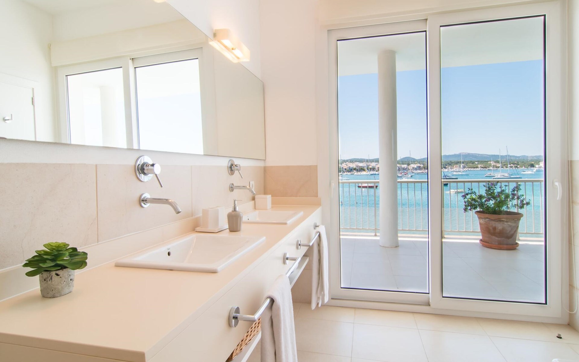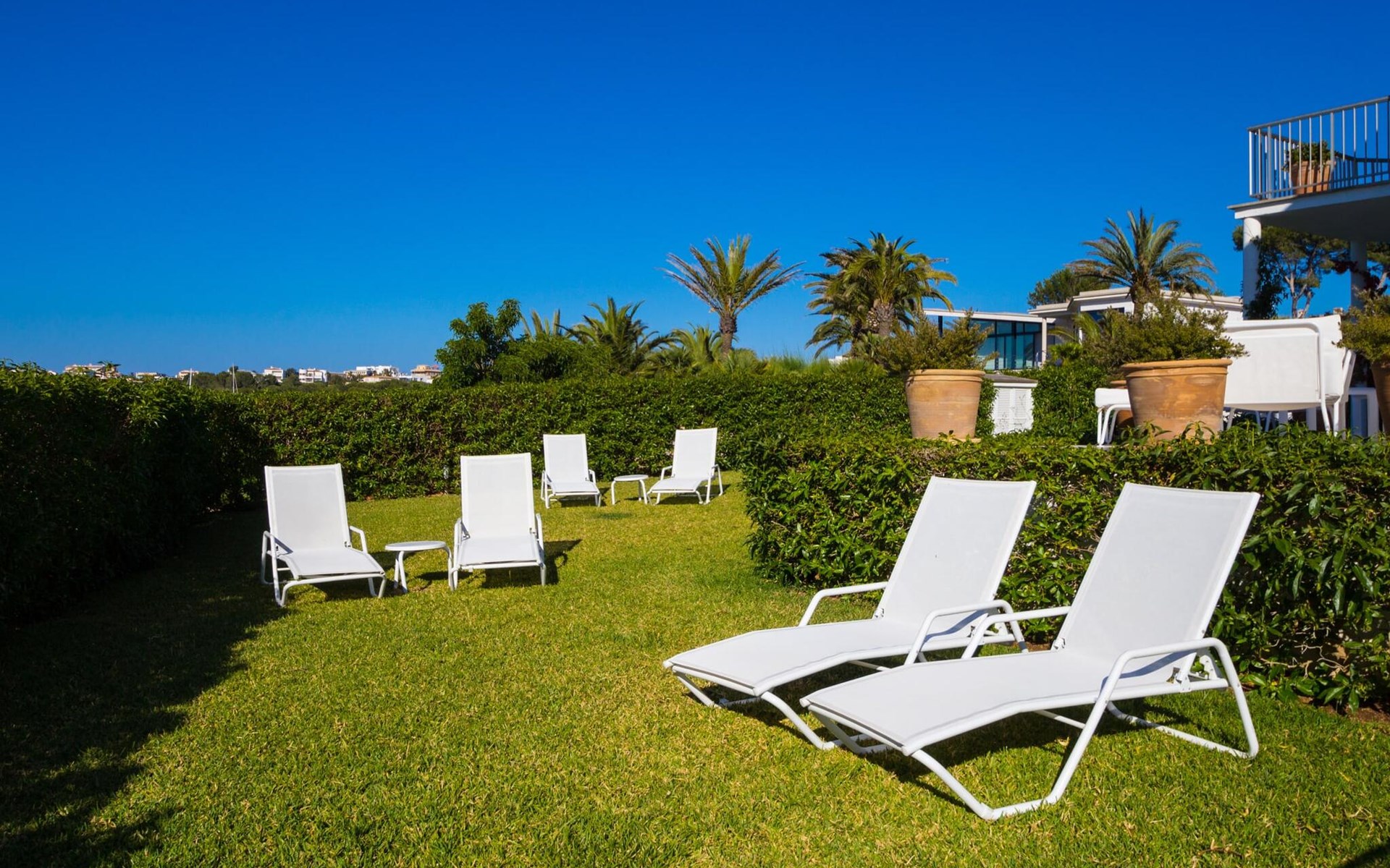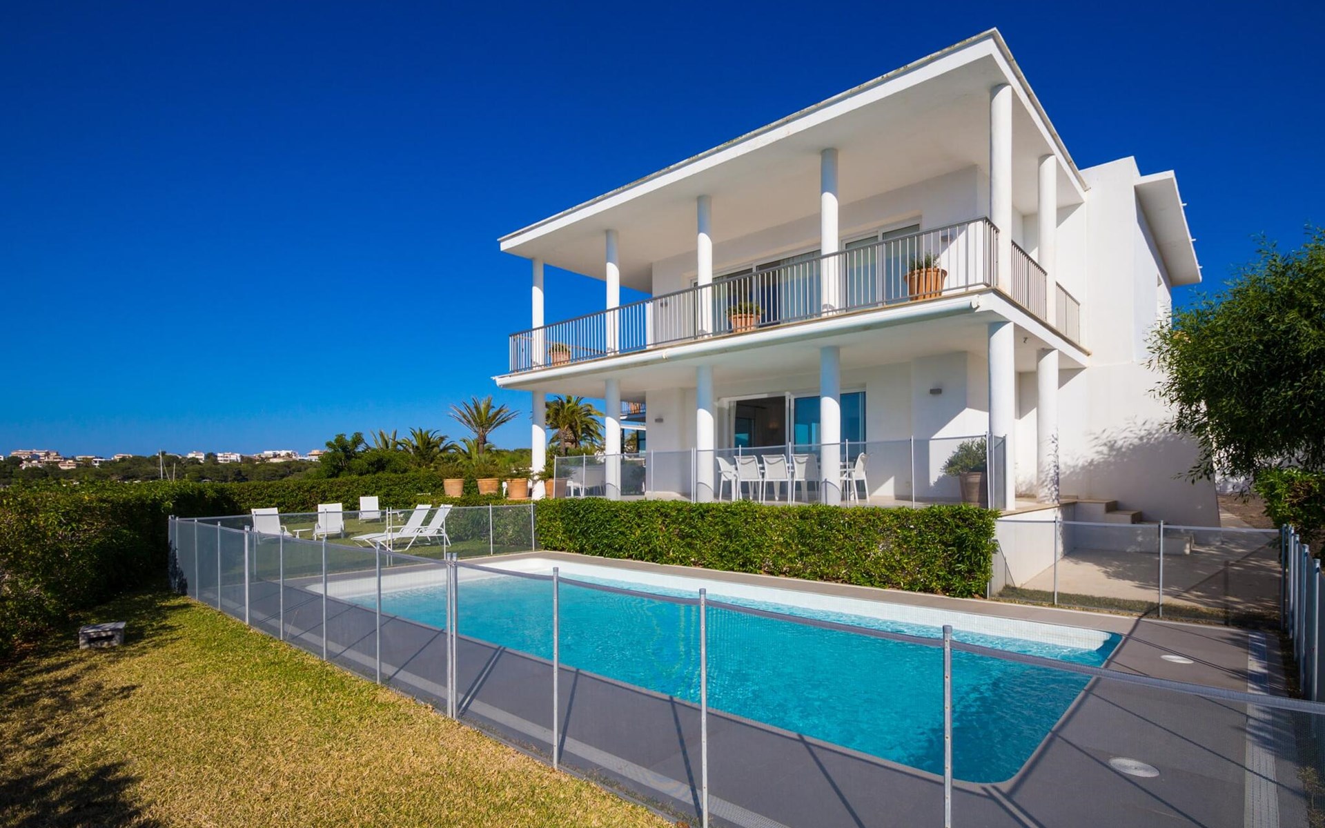 Der äußerst schöne Pool ist in das Haus integriert und verfügt über einen Zaun, um mögliche mitreisende Kleinkinder zu schützen. Darüber hinaus dient es als Absicherung, um Privatsphäre und Gemütlichkeit zu gewährleisten. Eine Sonnenterrasse sowie die angrenzende Liegewiese laden zum ausgiebigen Entspannen und Sonnenbaden auf einer der bequemen Liegestühle ein. Für den Fall, dass die Sonne zu stark scheint, stehen zwei Sonnenschirme zur Verfügung. Die Terrasse direkt am Pool bietet zu jeder Tageszeit luftigen Schatten und einen modernen Esstisch, von dem aus man nur staunend auf das herrliche Panorama blicken kann, das direkt vor einem liegt. So oder so ist es ein Vergnügen, den Tag im Morgenlicht zu beginnen oder nachts die funkelnden Lichter des Hafens zu bestaunen. Direkt an der Ecke und strategisch günstig am Sonnenlauf positioniert, befindet sich der herrliche Lounge-Bereich, in dem man nach Lust und Laune entspannen und den Zauber dieses Ortes genießen kann. Die überwiegend weiße Farbe verleiht der Umgebung ein exquisites Design und bildet gleichzeitig einen tollen Kontrast zum tiefblauen Himmel und dem Meer.