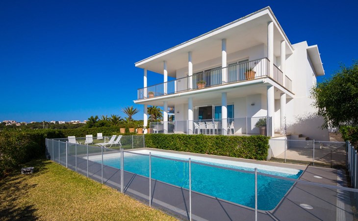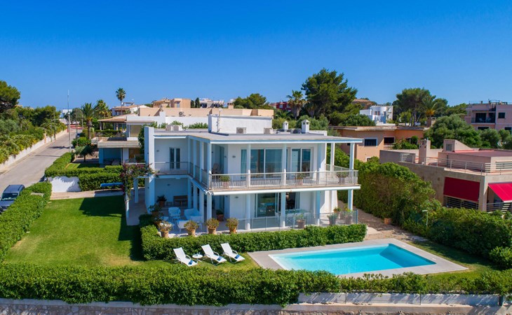 Diese moderne Villa direkt am Meer liegt im südöstlichen Teil Mallorcas, am Rande des Dorfes Portocolom. Das Haus ist mit vielen Sonnenterrassen und Balkonen ausgestattet, die einen fantastischen Blick auf das Meer und den Hafen von Portocolom bieten.