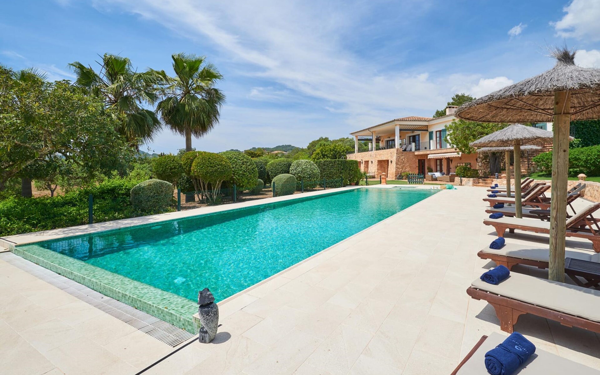 Portocolom (4,4 km) ist ein kleiner Küstenort. Dank der kleinen Altstadt und des Hafens ist es sehr malerisch und der Tourismus hat sich hier noch nicht so richtig durchgesetzt. Cala D'Or (9 km) bietet ein lebendiges Stück städtisches Leben mit einer Vielzahl von Bars, Restaurants, einem Yachthafen und mehreren kleinen Stränden. Auch weitere schöne Badebuchten sind von der Villa aus gut zu erreichen. Der Golfplatz Vall D'Or, der auch über ein gutes Restaurant verfügt, liegt ca. 700 m von der Villa entfernt. Die Villa „Luxury Golf d’Or“ ist ein exklusives und romantisches Anwesen mit Meerblick, gelegen auf der Ostseite der Insel, direkt an einem Golfplatz und nur ca. 10 Autominuten von Portocolom entfernt. Es ist eine attraktive Stadt mit einer kleinen Altstadt und einem Hafen. Von der Villa aus sind die herrlichen Strände der Ostküste schnell zu erreichen.