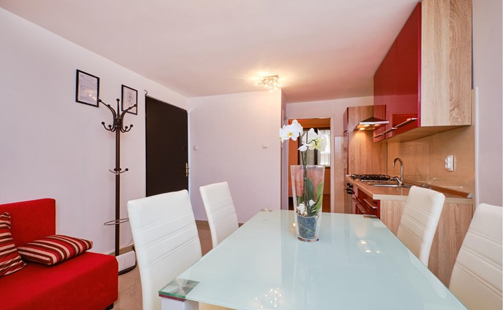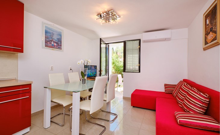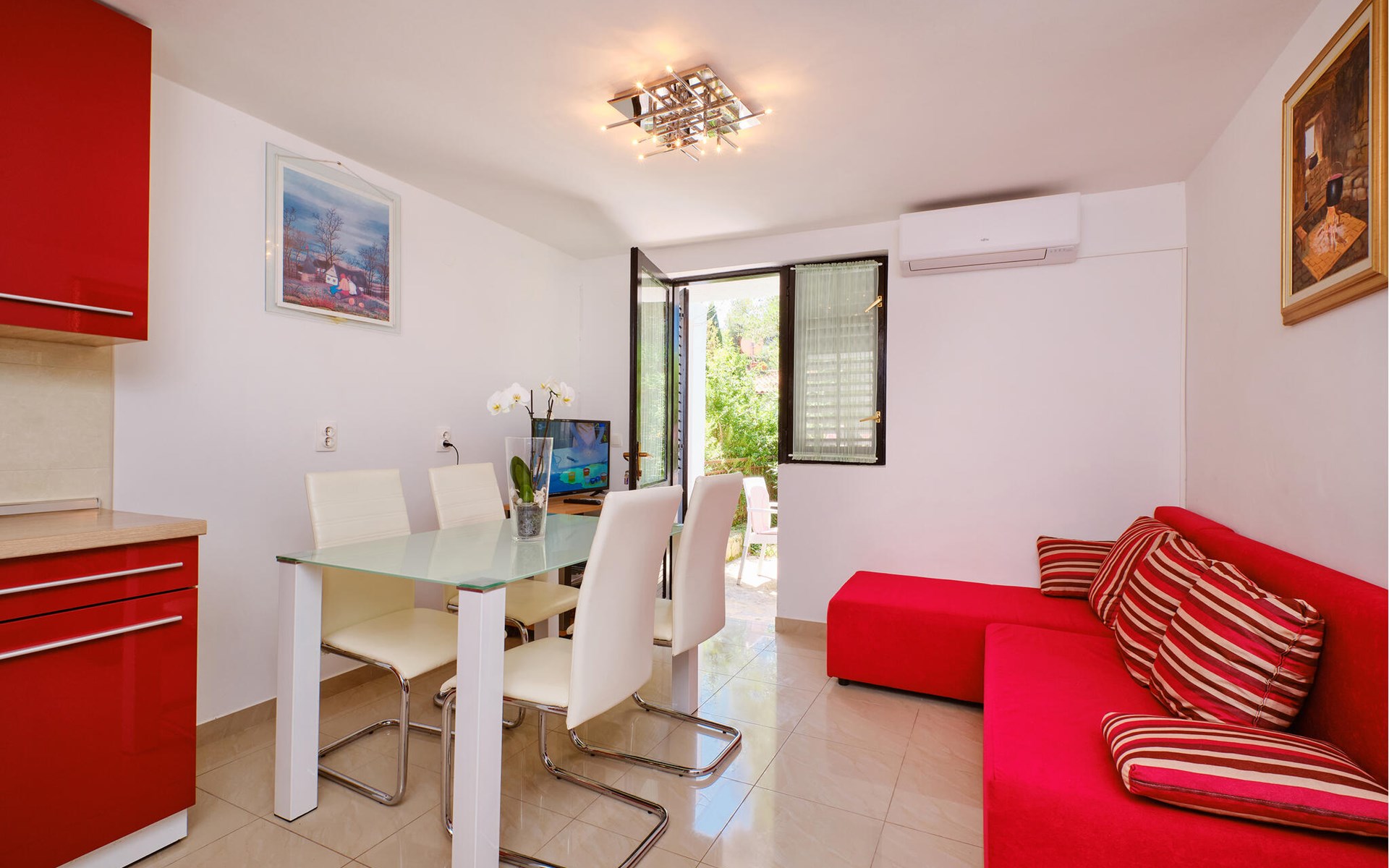 Dieses modern eingerichtete Apartment liegt in einer ruhigen Nachbarschaft und bietet Ihnen, umgeben von üppiger mediterraner Vegetation, ein ruhiges Refugium – nur wenige Schritte vom Strand entfernt. Starten Sie mit einem ausgiebigen Frühstück in den Tag, packen Sie Leckereien für ein romantisches Strandpicknick ein und lassen Sie einen langen Tag an der Sonne bei einem Brettspiel oder mit ruhigen Lesestunden ausklingen – im Küstenort Artatore, nahe dem Zentrum von Mali Lošinj.