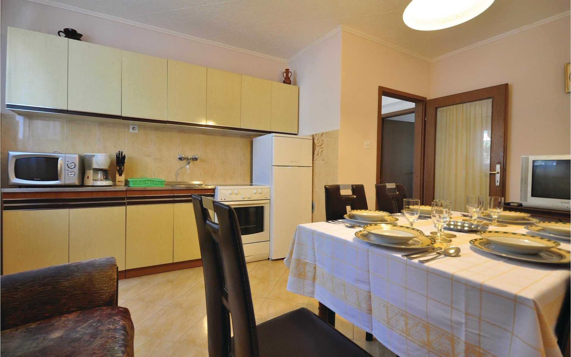 Diese Ferienwohnung befindet sich im Erdgeschoss eines Einfamilienhauses und liegt in unmittelbarer Nähe zum Strand. Sie ist einfach und funktionell eingerichtet und verfügt über einen Balkon in der Galerie, von wo sich ein Blick auf das Meer und die nähere Umgebung bietet.