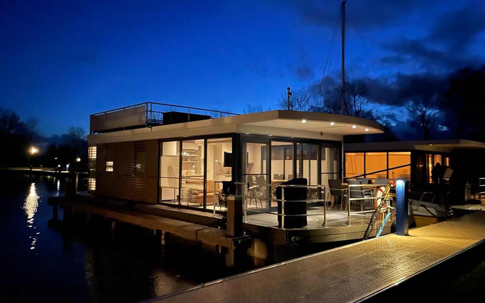 Das optimale Gefühl von Freiheit erleben – auf diesem ganz besonderen Hausboot! Genießen Sie den Komfort eines luxuriösen Ferienhauses, umgeben von Wasser. Bei einem leckeren Frühstück können Sie die vorbeiziehenden Boote beobachten. Oder was halten Sie davon, den Sonnenuntergang von der Dachterrasse aus zu beobachten? Ein ganz besonderes Erlebnis in einzigartiger Lage.