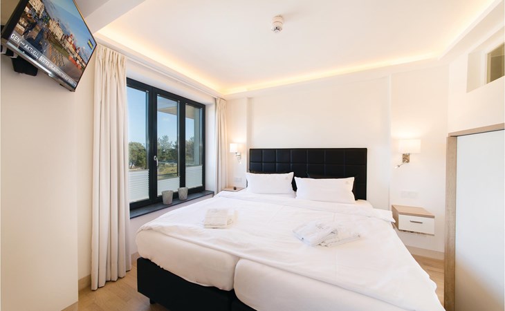 Allen Gästen von Prora Solitaire steht auch ein großzügiger Wellnessbereich zur Verfügung, den Sie von Ihrer Wohnung aus erreichen können, ohne das Haus verlassen zu müssen. Hier gibt es dann nicht nur einen großen Innenpool samt Kinderbecken, sondern auch verschiedene Saunen und Ruhebereiche, einen Fitnessbereich mit entsprechenden Geräten und die Möglichkeit für Massagen und andere Anwendungen, die an der Rezeption gebucht werden können.