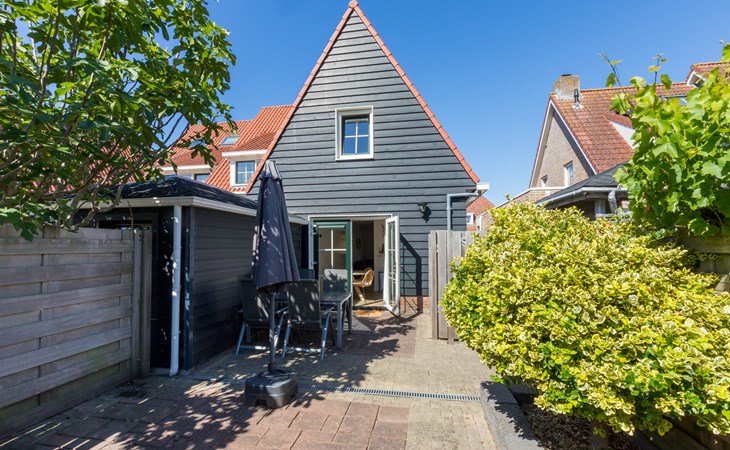Liggend in rustige omgeving op loopafstand van het centrum en het strand. Achterom afgesloten ruimte om je fiets te stallen met tuinstoelen en een hofje.