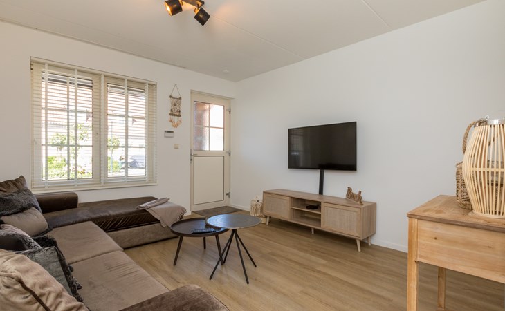 Das Haus kann bis zu fünf Erwachsene beherbergen. Im Erdgeschoss befinden sich Wohnzimmer, Küche und Garten. Die Küche ist mit einem Kochfeld, einer Kombi-Mikrowelle, einem Geschirrspüler, einem Kühlschrank mit Gefrierfach, einem Toaster, einem Wasserkocher, einer Senseo- und einer Filterkaffeemaschine ausgestattet. Hier steht auch der Esstisch. Durch die Flügeltüren gelangt man in den Garten, in dem sich ein Gartenset und eine Sitzbank befinden. Hier kann man nachmittags und abends wunderbar die Sonne genießen. Zeit zum Grillen!