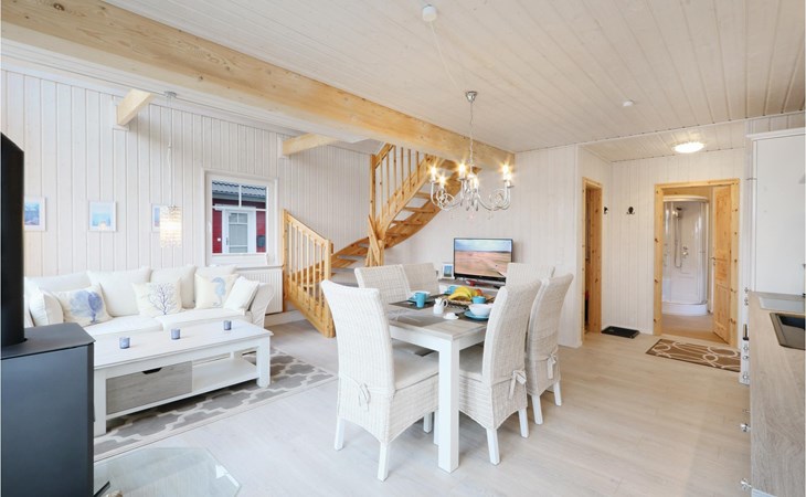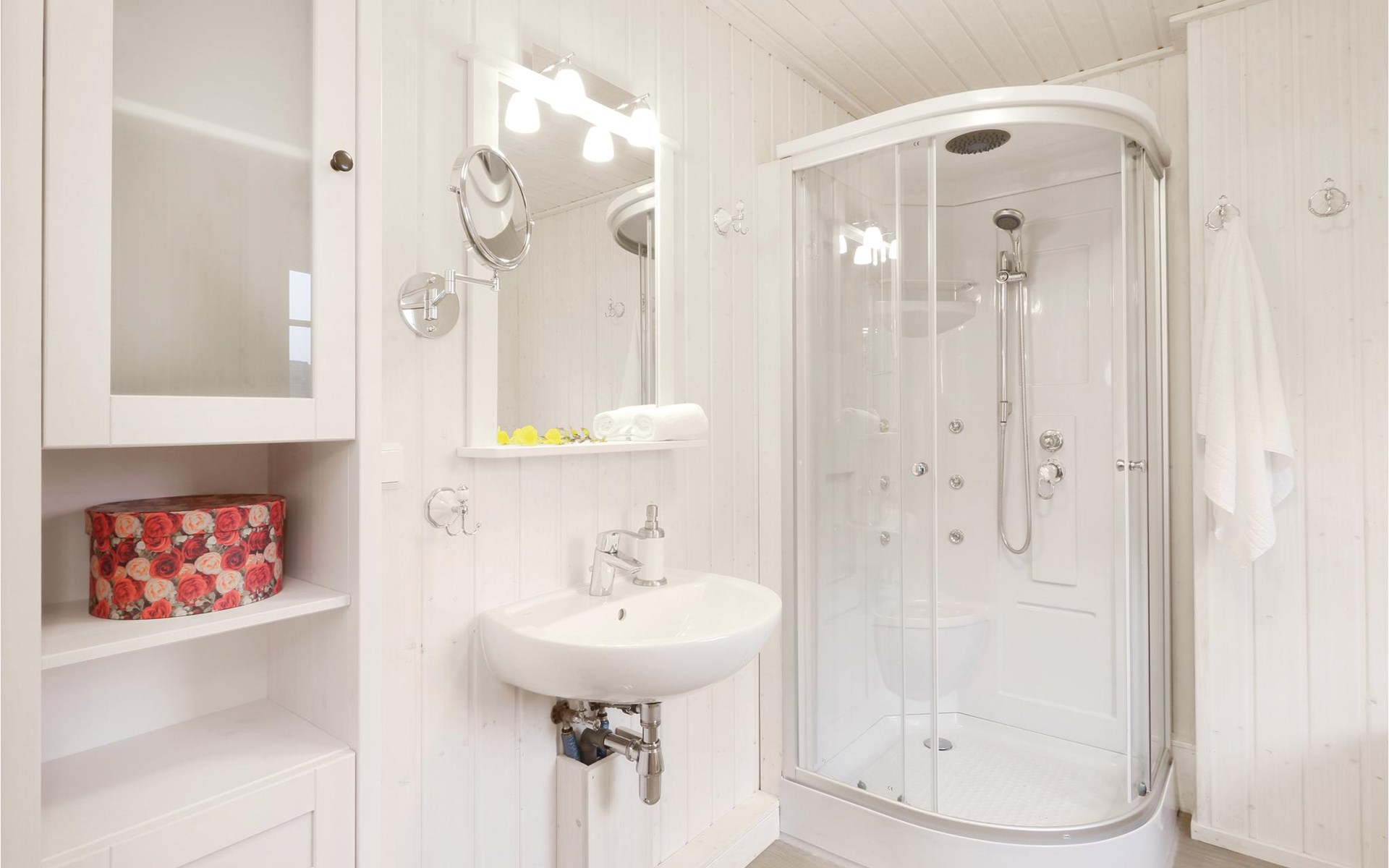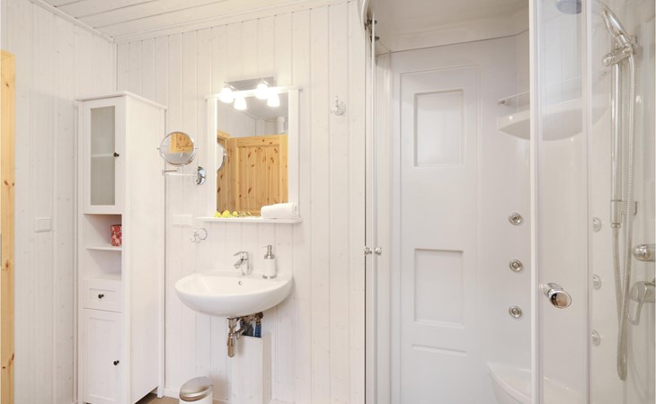 Das Haus verfügt über zwei separate Schlafzimmer. Hier befindet sich, neben dem TV im Wohnzimmer, noch ein zweiter Fernseher. Unter der Wellness-Dusche im großzügigen Bad im Erdgeschoss lässt es sich ebenfalls herrlich relaxen.