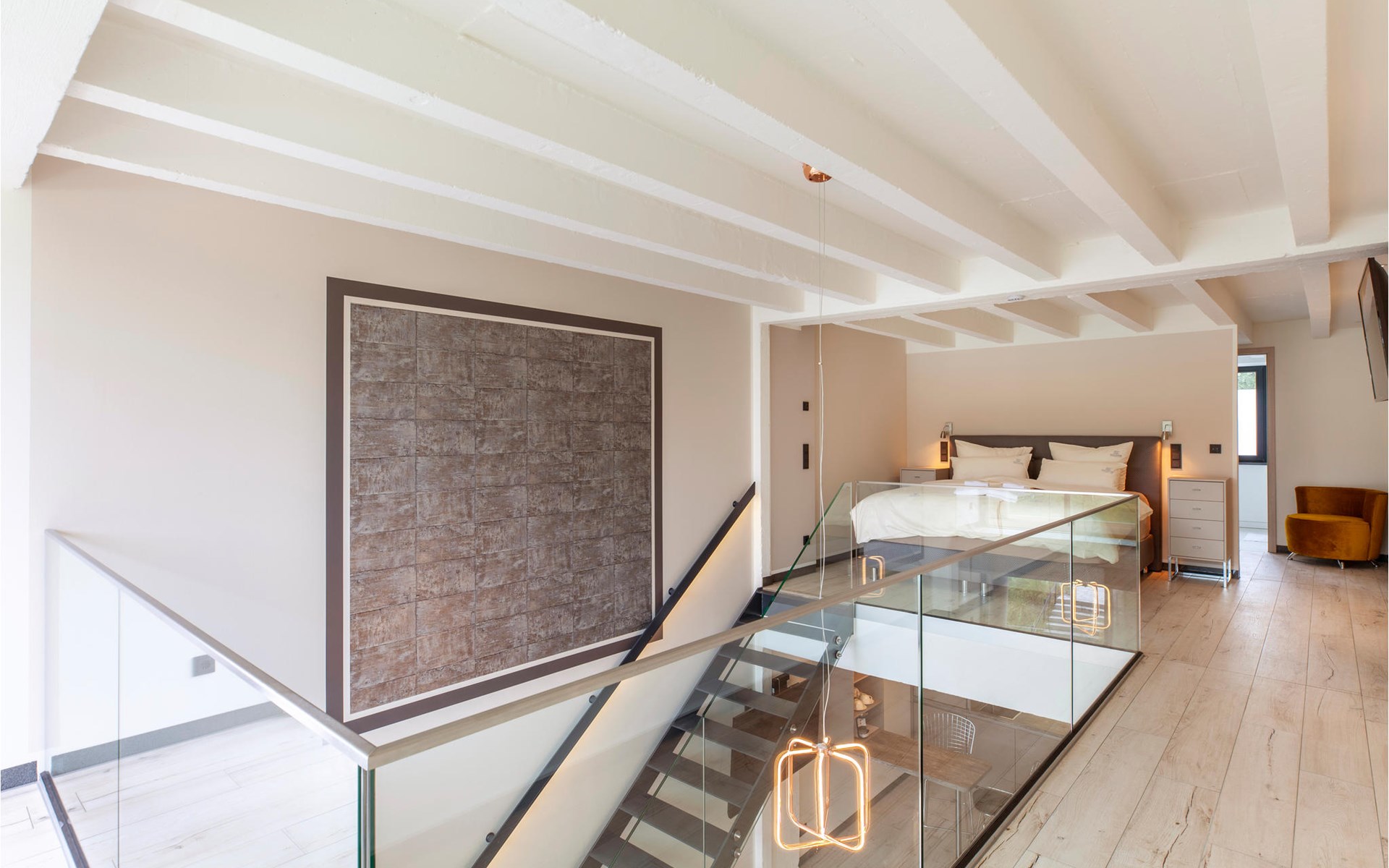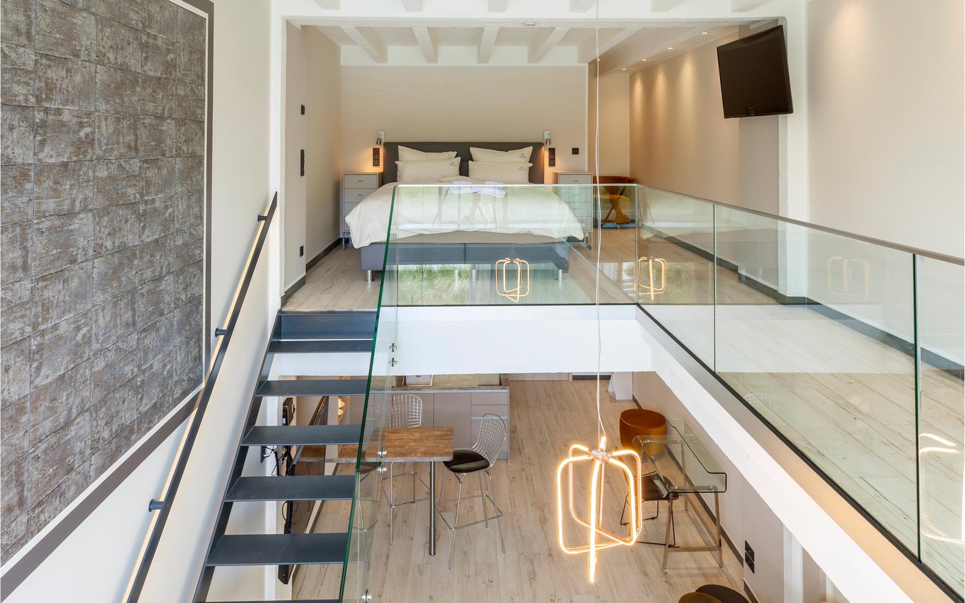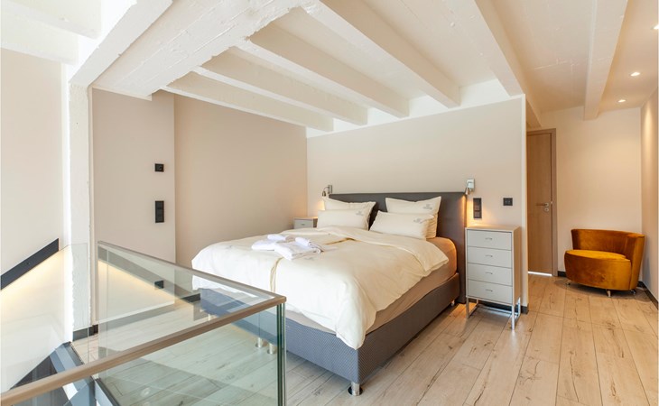 Das hochwertige "Avida Loft" überzeugt durch elegantes und außergewöhnliches Design auf zwei Ebenen. Durch die riesigen, elektrischen Panoramafenster sowie die Bauweise mit viel Glas ist die loftartige Wohnung sehr hell und lichtdurchflutet. Alle Bereiche sind miteinander verbunden, so wird ein offenes Raumgefühl geschaffen. Im Obergeschoss, der über eine Treppe zugänglich ist, befindet sich der offene Schlaf- und Ankleidebereich. Genießen Sie hier den Blick auf die Ostsee direkt vom Bett aus. Das hochwertige Boxspringbett mit sehr bequemen Matratzen lässt Sie herrlich ausgeruht den Tag beginnen. Ein weiterer Schlafplatz befindet sich auf dem Schlafsofa im Wohnbereich. Die kleine Pantry-Küche verfügt über einen Geschirrspüler und für Kaffeeliebhaber eine Tassimo-Kapselmaschine (Kapseln bitte selbst mitbringen).