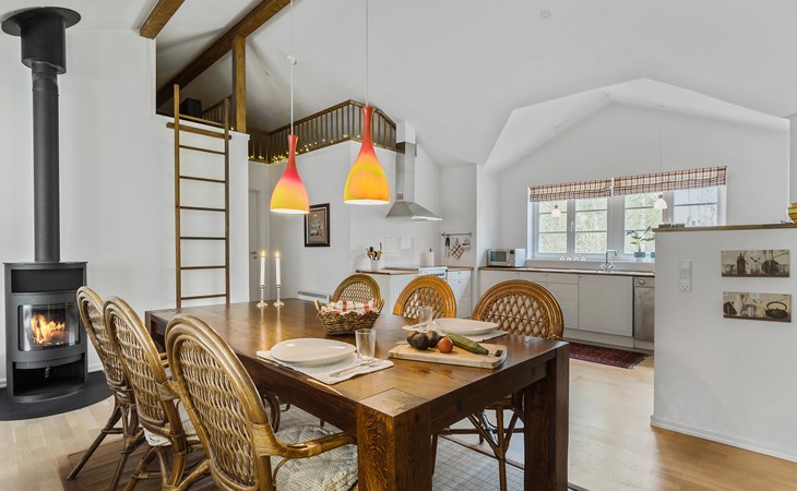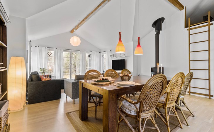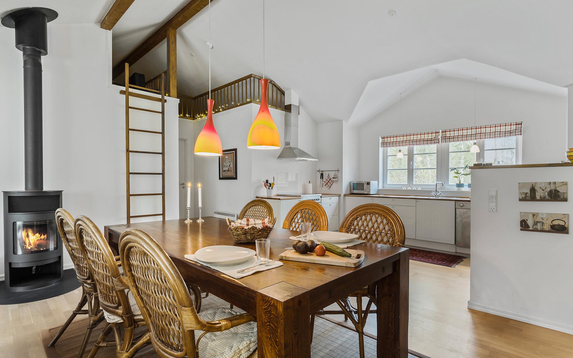 Willkommen in Ihrem behaglichen Ferienhaus, das gemütliche Familienmomente verspricht. Beginnen Sie den Tag in der geräumigen Küche und bereiten Sie eine gute Tasse Kaffee und ein üppiges Frühstück zu. Hier können Sie auch ohne Probleme gemeinsam kochen. Im Wohnzimmer lädt das weiche Sofa zu Filmabenden ein, und der gemütliche Kaminofen verheißt Wärme und Geborgenheit an kühleren Abenden. Spielen Sie Brettspiele am Esstisch und genießen Sie Ihre Mahlzeiten hier. Speisen können Sie auch draußen auf der großzügigen Terrasse. Ob beim morgendlichen Frühstück in der Morgensonne oder bei Grillabenden unter dem Sternenhimmel bleibt Ihnen überlassen. Der umliegende Garten bietet Raum zum Entspannen und für Ballspiele mit den Kindern.