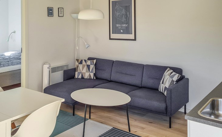 Lassen Sie den Alltag hinter sich und verbringen Sie einen erholsamen Urlaub in der Wohnung, die Sie nur ein paar Schritte vom Meer entfernt empfängt. Genießen Sie schon beim Aufwachen den schönen Blick ins Freie. Nutzen Sie die wohnlich möblierte Unterkunft als Ausgangspunkt für wunderbare Strandtage und Erkundungen der Umgebung. Das Sofa lädt dazu ein, abends noch lange gemütlich zusammen zu sitzen.