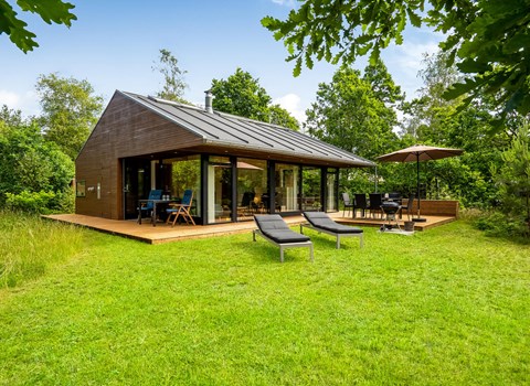 Hier können Sie Ihren Urlaub in einem gemütlichen Ferienhaus verbringen, das sich von traditionellen Ferienhäusern abhebt. Der Stil ist einfach und klar und der Raum ist gut genutzt, sodass Sie sowohl drinnen als auch draußen entspannen können.