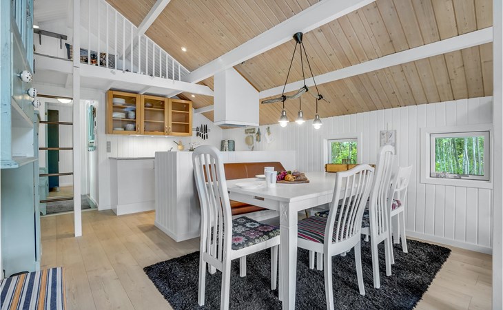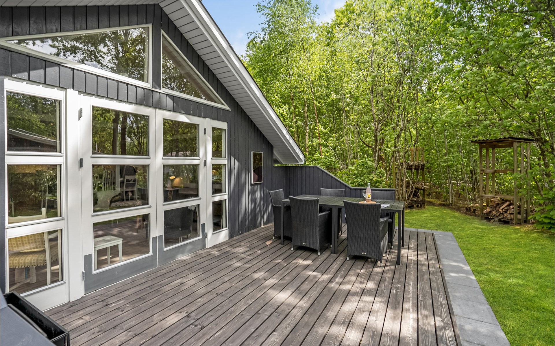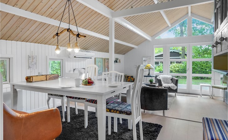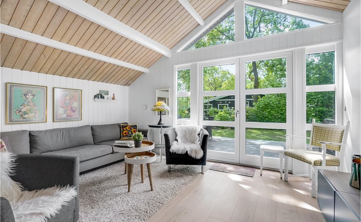 Ein sehr persönlich eingerichtetes Ferienhaus mit hohem Dach und großem Naturgrundstück.