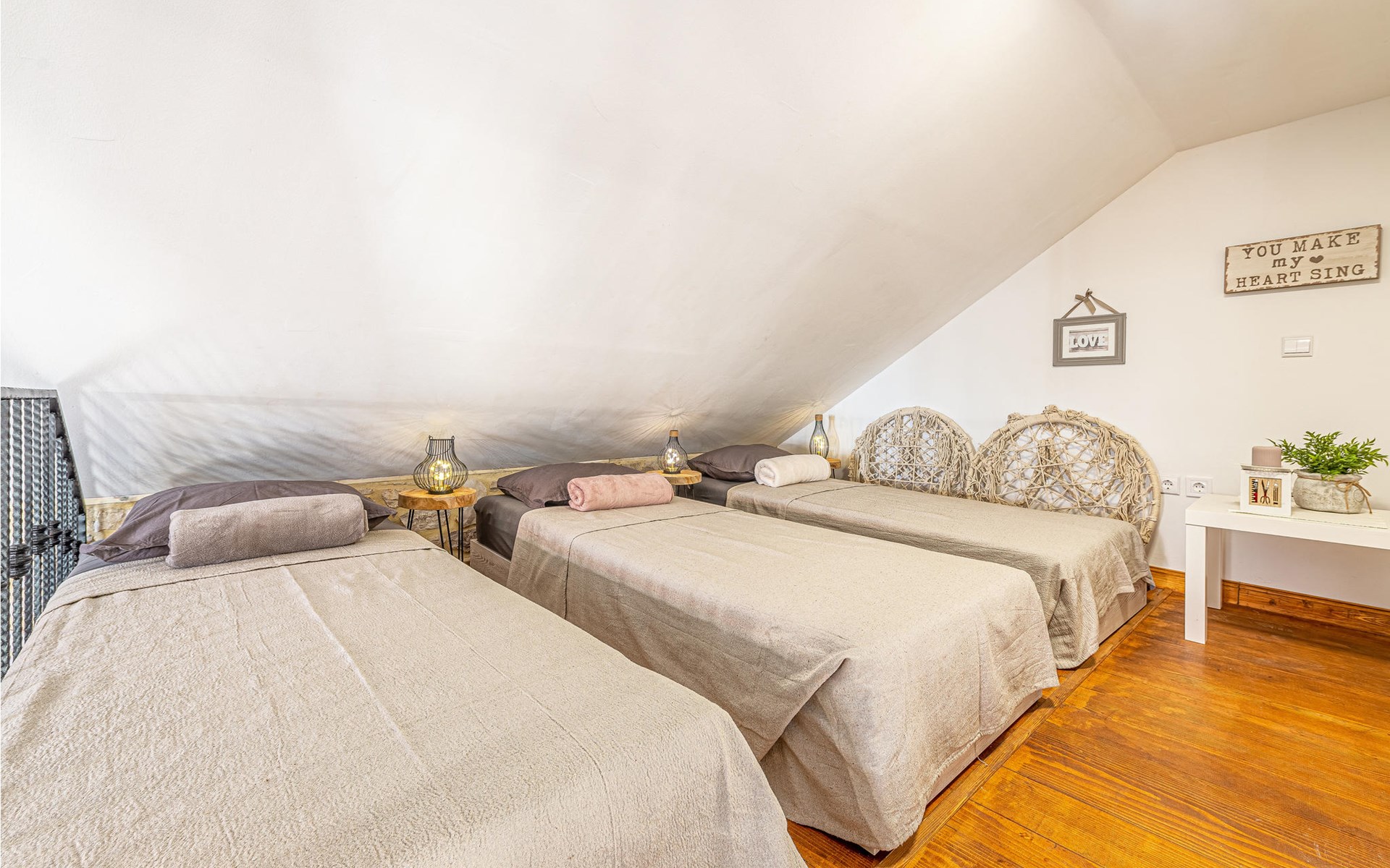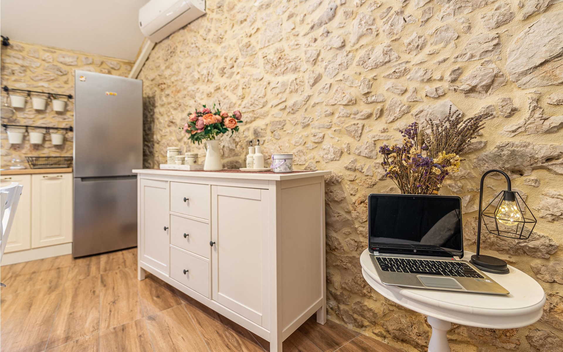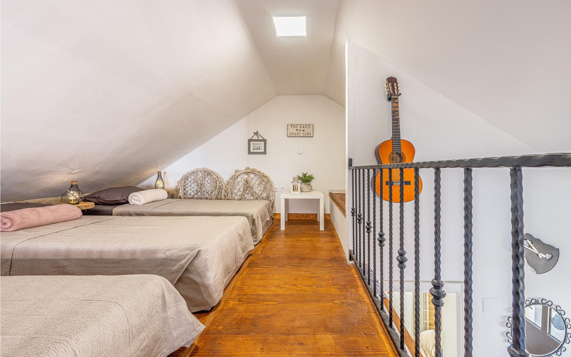 Der authentische Ausdruck, mit dem dieses Ferienhaus seine Gäste begrüßt, setzt sich auch im Inneren des Hauses fort und geht dort eine perfekte Harmonie mit den modernen Elementen der Einrichtung ein. Sie haben hier eine komfortable Ausstattung und können sich auf geschmackvoll eingerichtete Räumlichkeiten freuen. Der Besitzer stellt eine Gitarre, einen Laptop und einen Luftbefeuchter zur Verfügung.