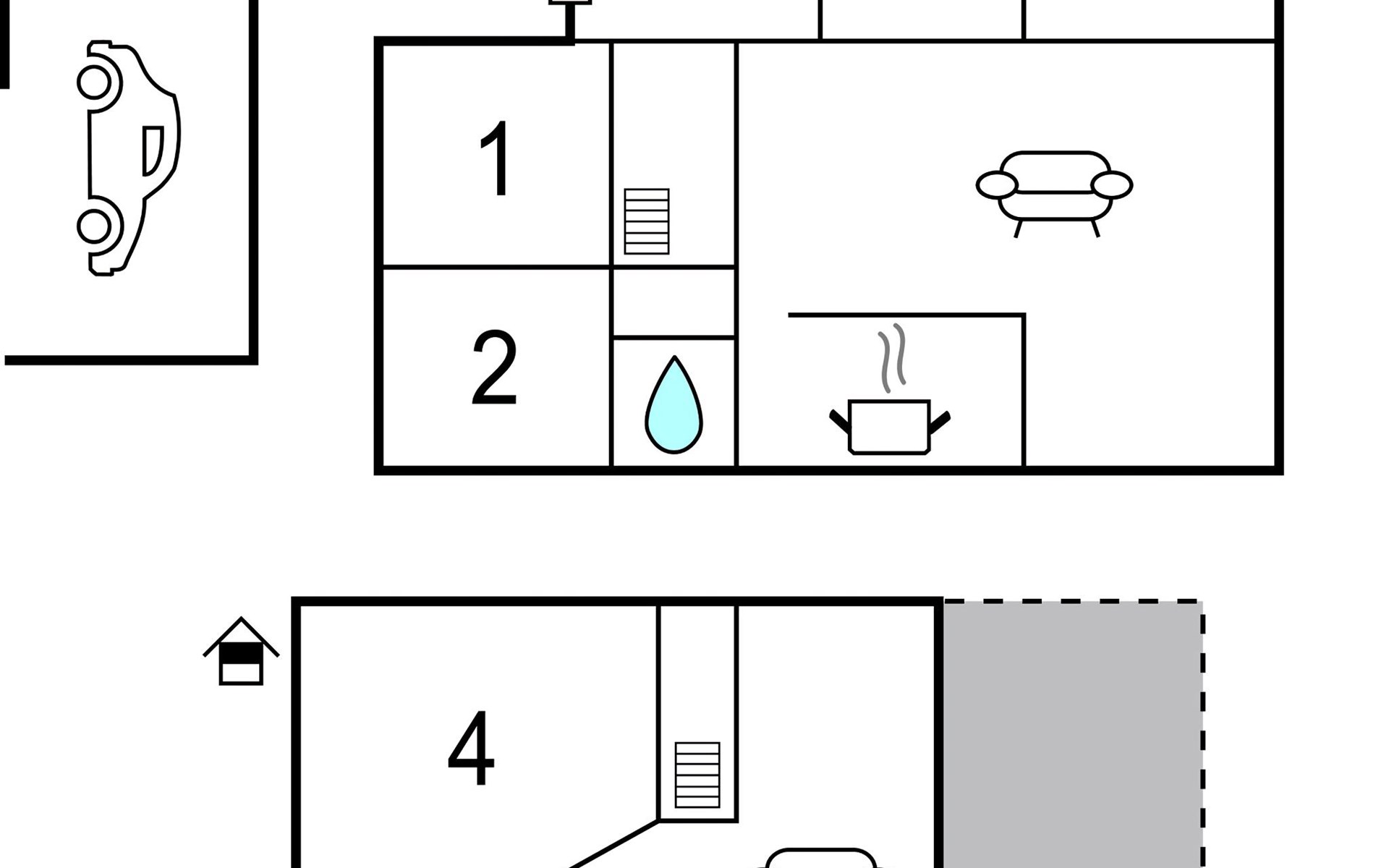 Ein Autostellplatz befindet sich unter dem Carport, ein weiterer direkt daneben. Das Haus wird über eine Nachtspeicherheizung beheizt.