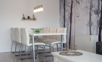 Das Wohnzimmer verfügt über ein Doppelschlafsofa, einen Flachbild-TV und eine Sitzecke. Vom Wohnzimmer aus können Sie auf die möblierte Terrasse gehen, wo Sie den ganzen Tag die Sonne genießen können. Die Küche ist mit einem Kochfeld, einem Backofen, einem Kühlschrank und Gefrierfach, einem Geschirrspüler, einer Kaffeemaschine und einem Wasserkocher ausgestattet. Das Schlafzimmer hat ein Doppelbett mit Kleiderschrank und 2. Schlafzimmer mit Etagenbett. Das Badezimmer verfügt über eine Toilette, ein Waschbecken und eine Dusche. Sie können Ihr Auto sicher vor das Haus parken auch Skier und Fahrräder sicher aufbewahren. Ein Waschkeller mit Waschmaschine steht zur Verfügung.