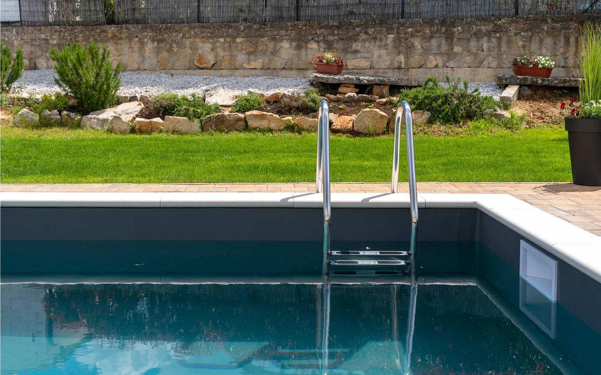 Auf eigenen Grundstück von 1000 qm, nur den Gästen zur Verfügung, bietet es einen 32 qm großes Pool, 4 Liegestühle, überdachte Terrasse mit Esstisch, Grill und zwei Parkplätze.