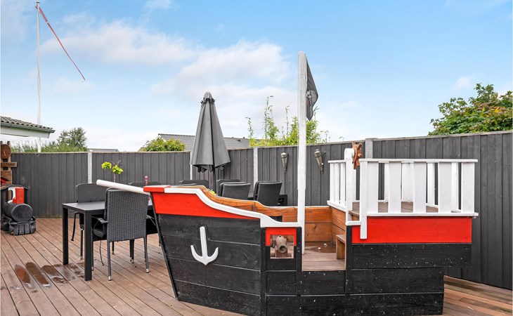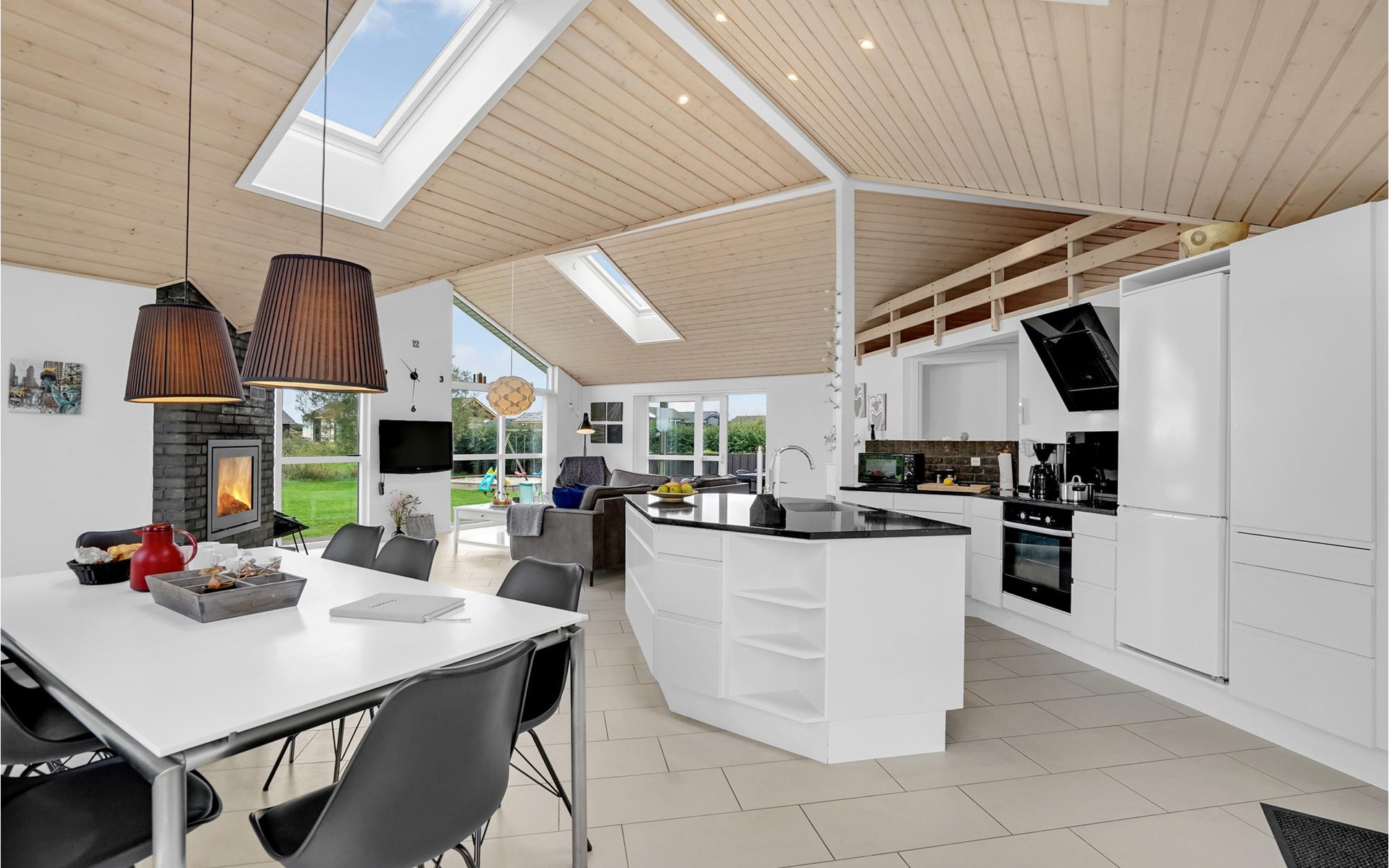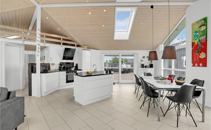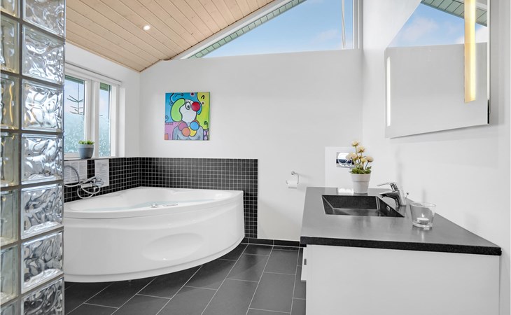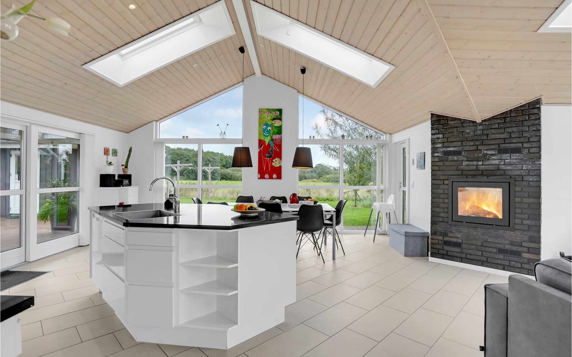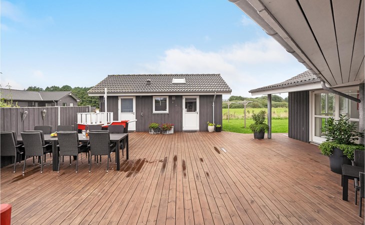 Qualitätsferienhaus mit einer schönen Aussicht auf die Natur. Die Einrichtung ist geschmackvoll, hell und besteht aus modernen Möbeln. Küche und Wohnzimmer liegen zueinander offen, zudem sorgen die großen Panoramafenster für einen guten Lichteinfall im ganzen Haus. Es gibt gute Schlafzimmer und Badezimmer solwie eine Sauna und einen Whilpool zum Entspannen. Gerne aufhalten werden Sie sich bestimmt auf der sehr großen Terrasse, auf Ihr können Sie sich ungestört aufhalten. An heißen Sommertagen können Sie sogar die Außendusche benutzen. Im am Haus angrenzenden Annex ist ein eigenes Badezimmer. Hier wird Ihnen alles, was das Urlaubsherz begehrt, geboten. Flovt genießt eine grüne, ümbegende Landschaft und einen kinderfreundlichen Strand am Kleinen Belt, denn das Wasser ist nicht tiefgründig.